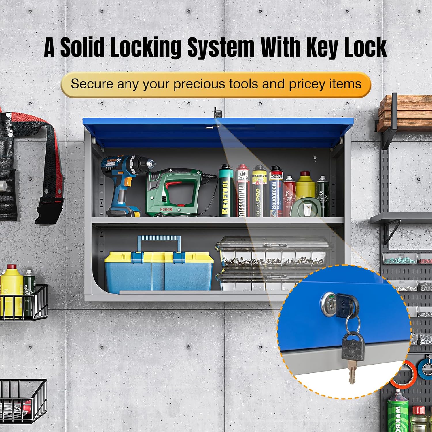 - ✅➤【A solid locking system】: This wall storage cabinet comes with a lock with 2 keys, which is a plus to secure any important and pricey items that you are storing. The lockable feature is the cherry on top, ensuring your precious tools are safe from pesky tool gnomes.