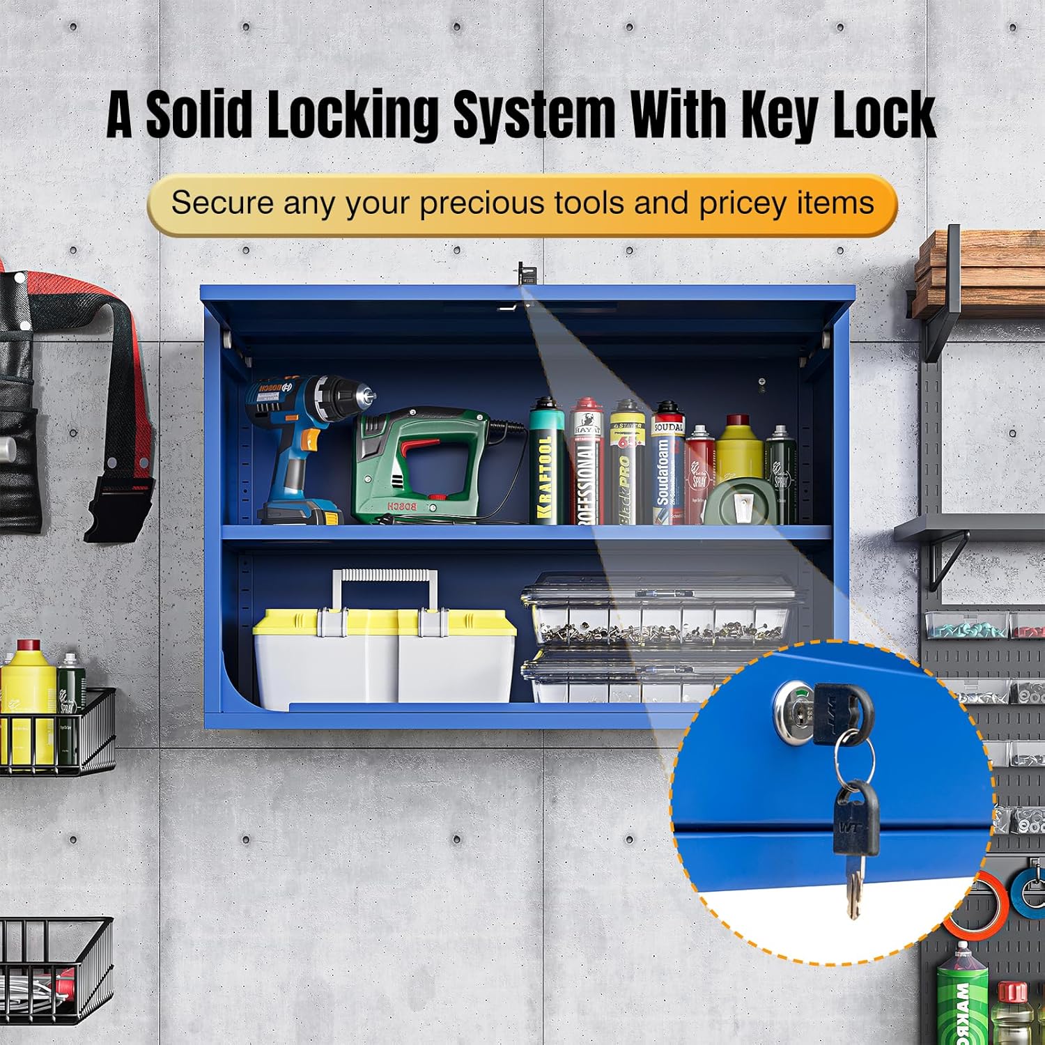 - ✅➤【A solid locking system】: This wall storage cabinet comes with a lock with 2 keys, which is a plus to secure any important and pricey items that you are storing. The lockable feature is the cherry on top, ensuring your precious tools are safe from pesky tool gnomes.