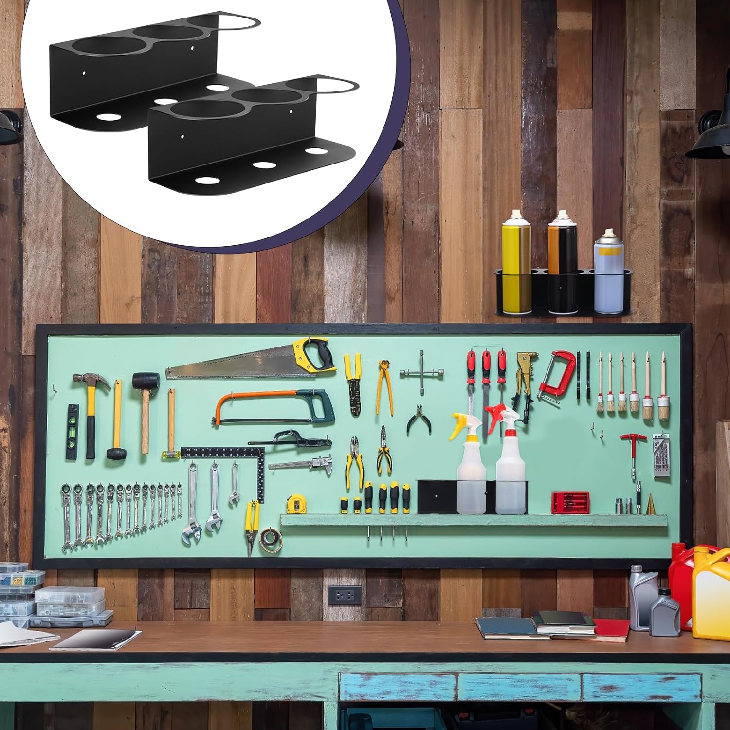 Therwen 2 Pcs 3 Holes All Purpose Steel Spray Bottle Holder Heavy Duty Can Holder Rack Organizer Easy Install Wall Mount Paint Spray Bottle Organizer Storage Rack for Garage Home Workspace(Black)
