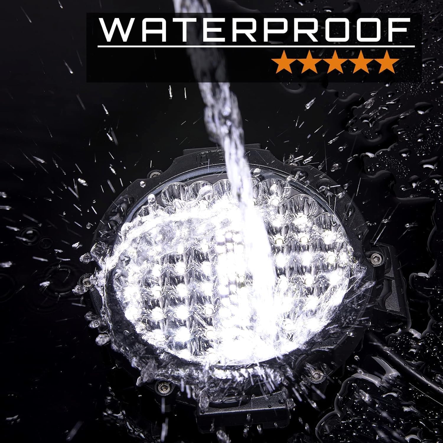 - 【Pack Includes】2 packs of 7 in round LED off-roading lights, 2 kits mounting brackets. 1 Kit 3 meters Wiring Harness