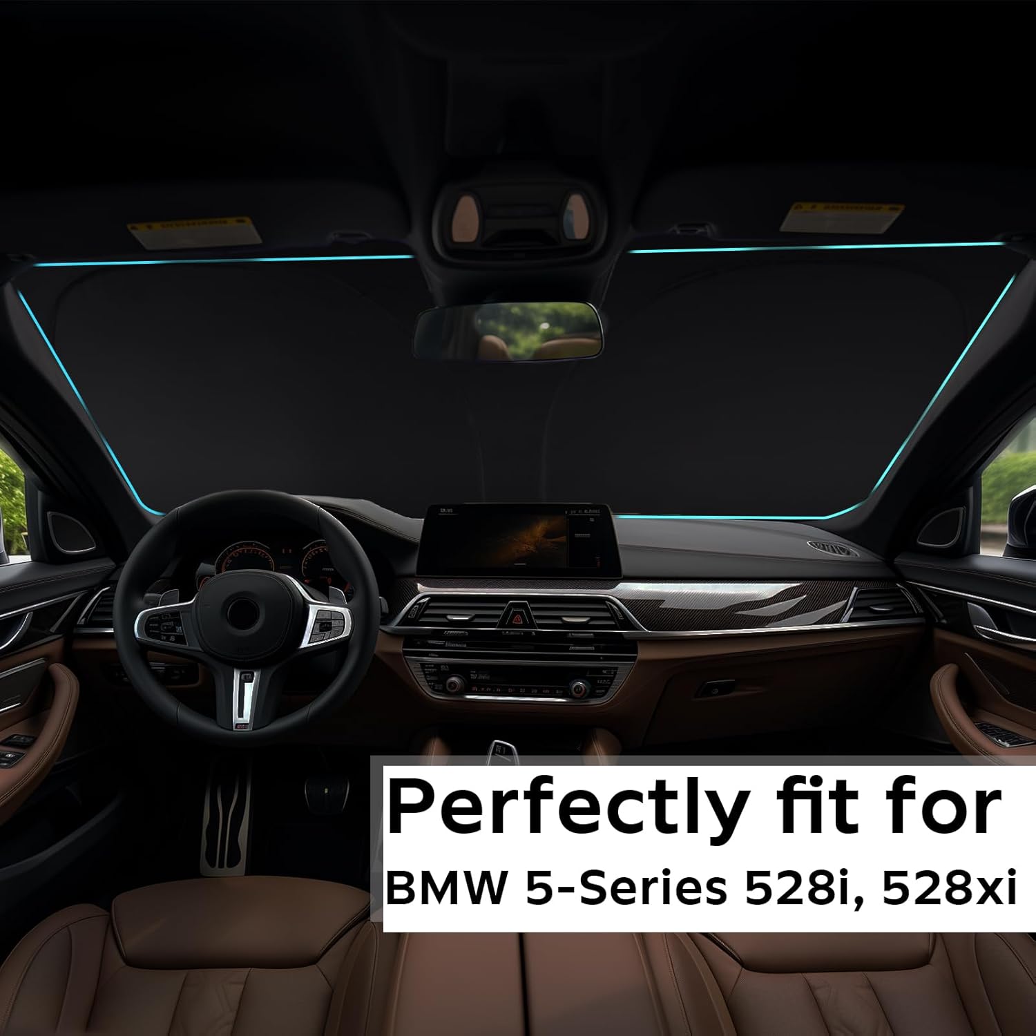 Windshield Sun Shade Sunshade Custom Fit for 2018-2023 2024 BMW 5 Series Windshield Cover for 5-Series 525i, 520i 528i 530i 535d 535i 550i Window Shade Sun Visor Protector 240T Refleactive Blocks UV