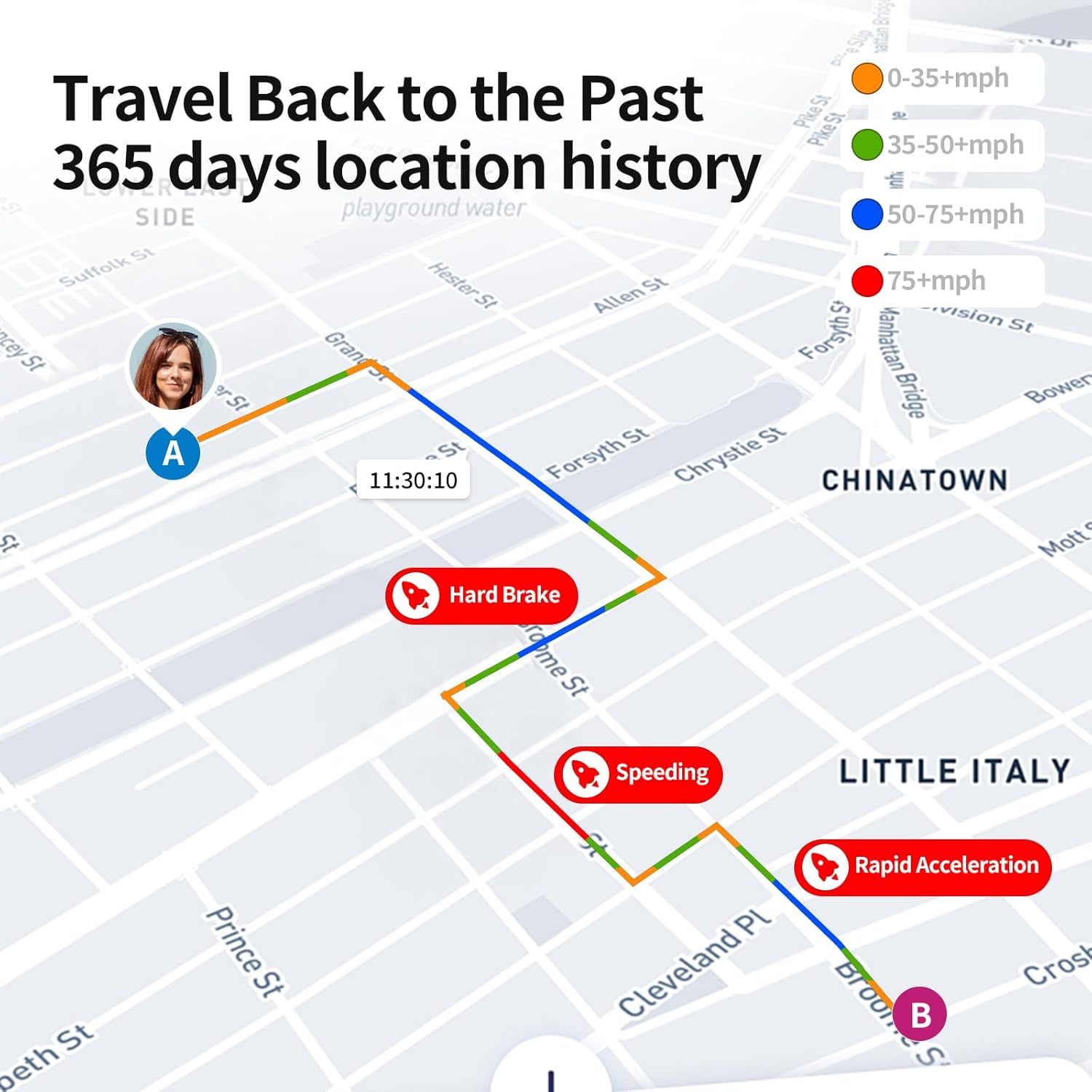 - 【12-month Data History】All tracking data is securely stored with full confidentiality, allowing you to review up to 1 year of trip history.