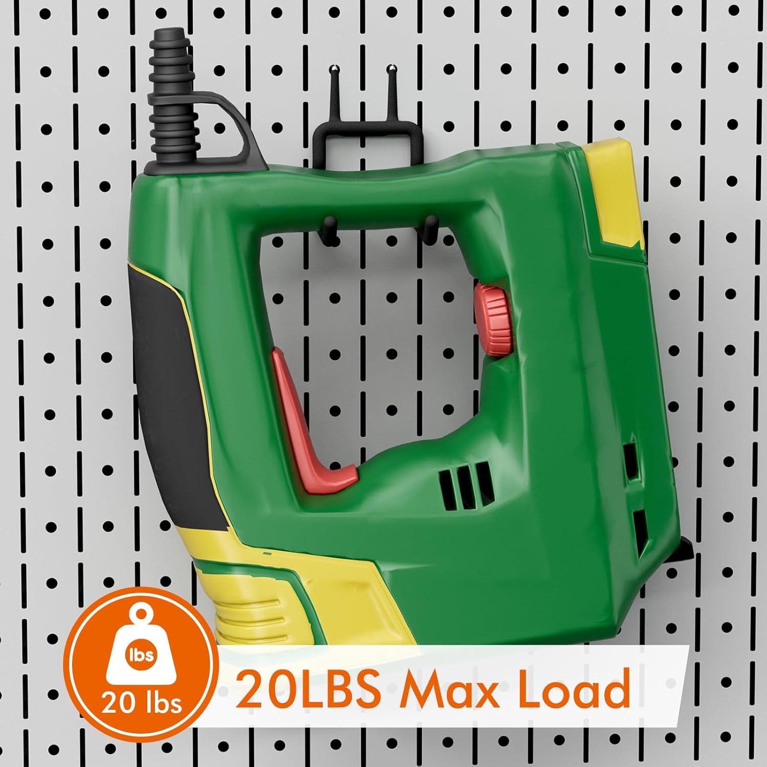 - Universal Pegboard Accessories: Fits 1/4-inch pegboards with 1-inch spacing. Two-pronged hanging design, no need for peg locks. Each hook holds up to 20 lbs.