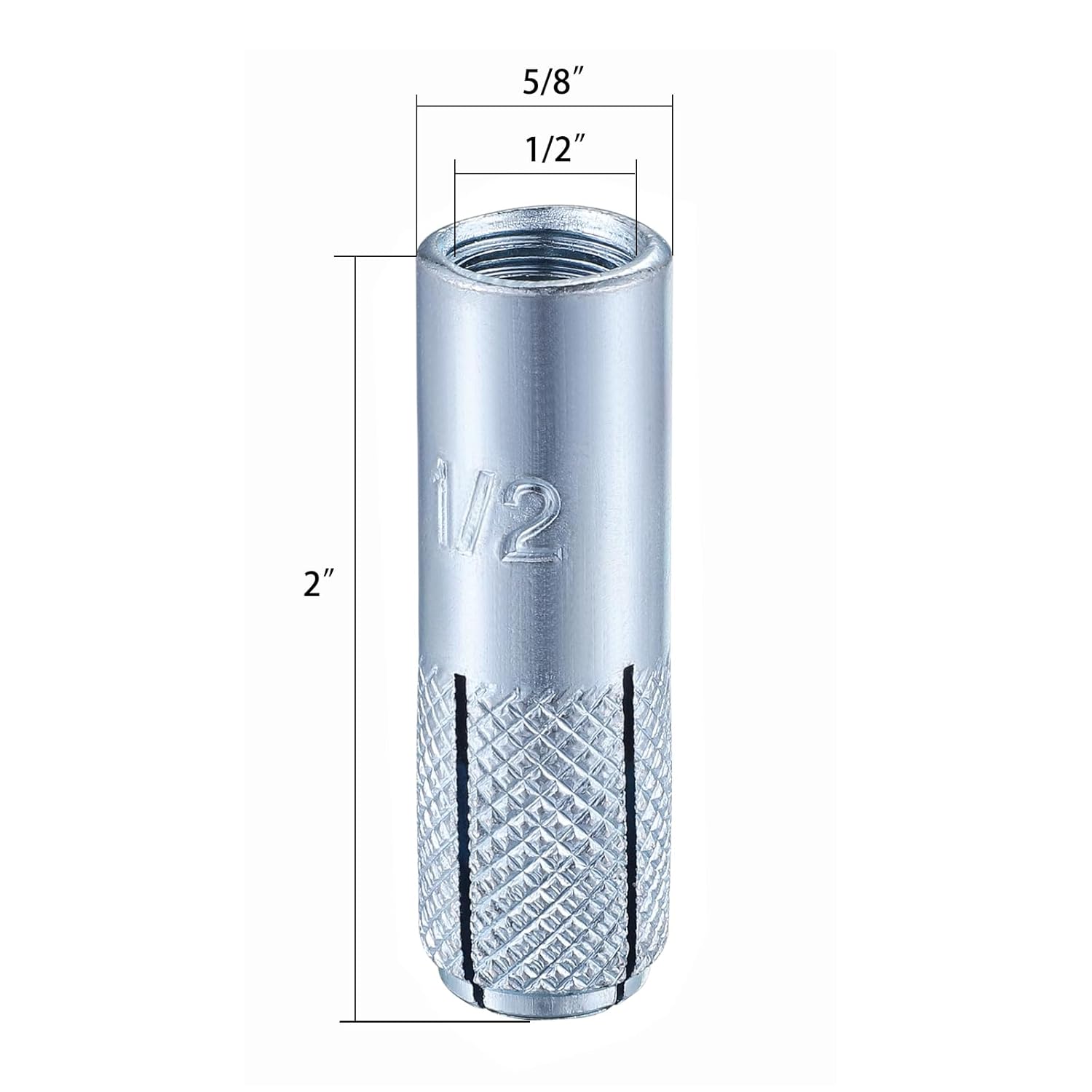 - [Function] 1/2" Inch premium iron material knurled drop in anchors: 2" hole depth and 5/8" hole diameter, use with 1/2-13 bolt.
