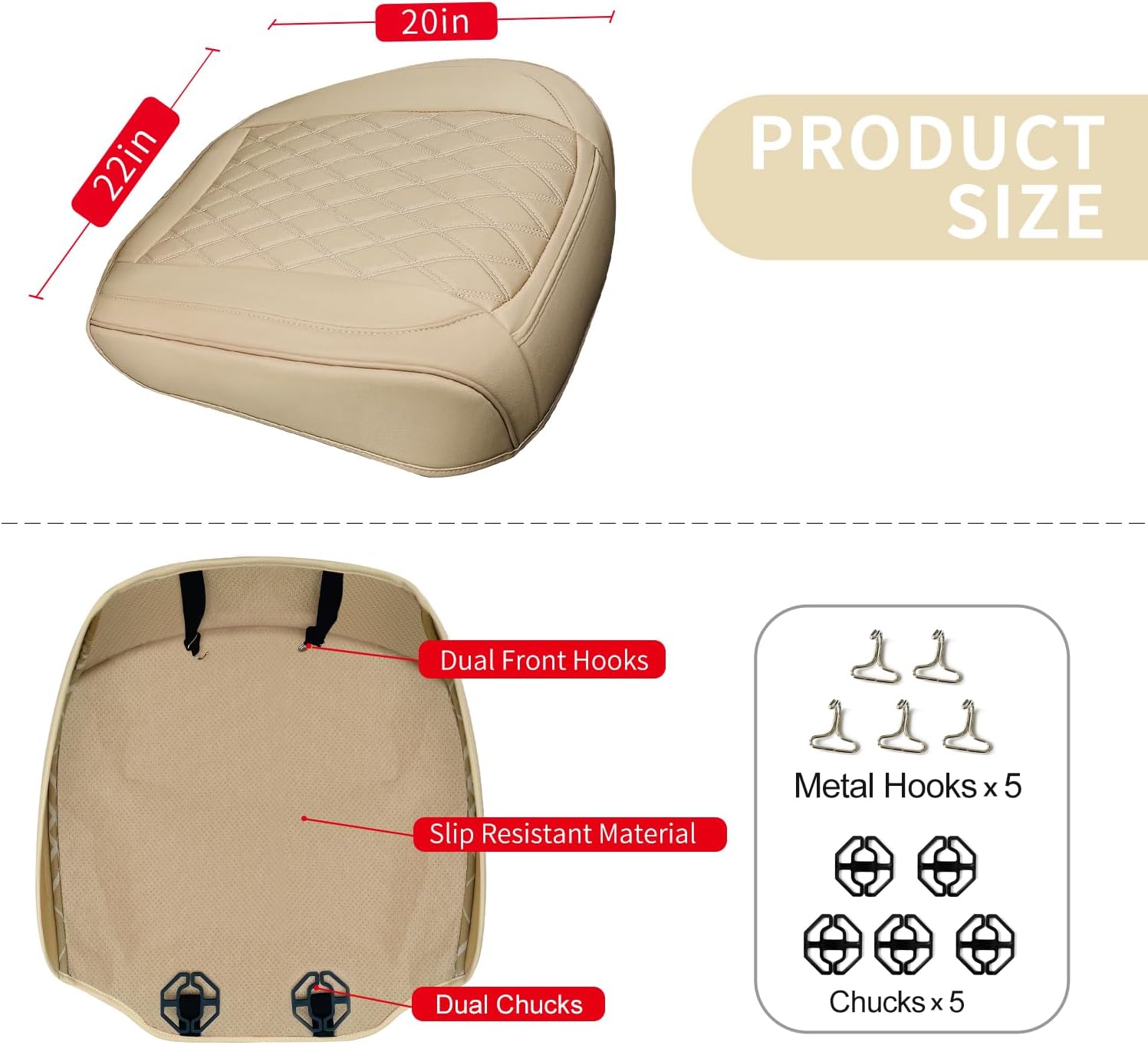 1 Pack Leather Front Car Seat Cover Bottom Car Seat, Anti-Slip and Full Wrap Driver Car Seat Protectors, Luxury Waterproof Bottom Auto Seat Cushion Pad Mat for Most Vehicles(Beige)