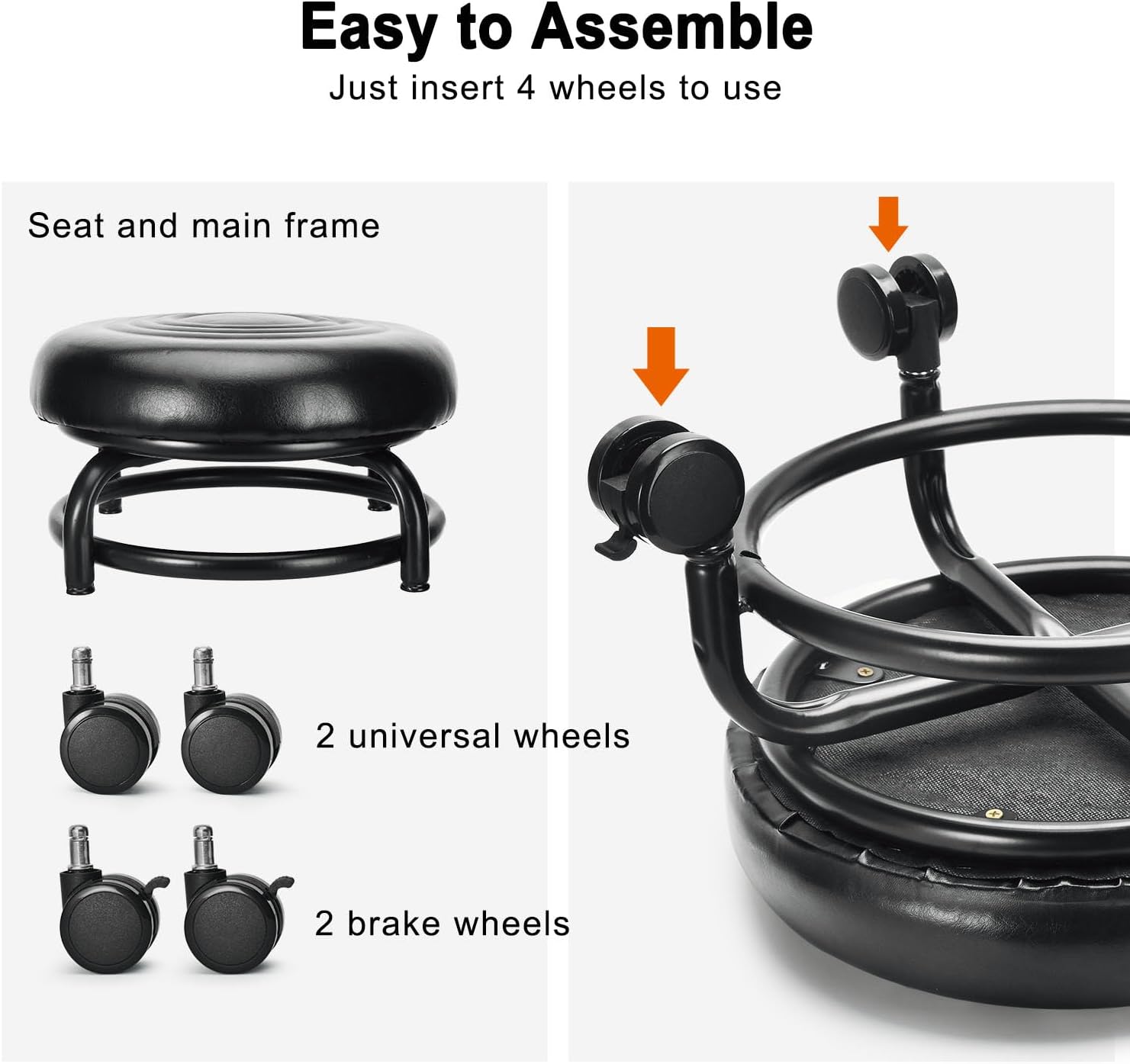 - â¨ď¸ăMulti functional Rolling StoolsăThe height of the stool is 10 inches from the ground, the diameter is 13inches, and the maximum capacity is 300lbs. Strong bearing capacity, and the seat height conforms to ergonomics, meeting most needs.