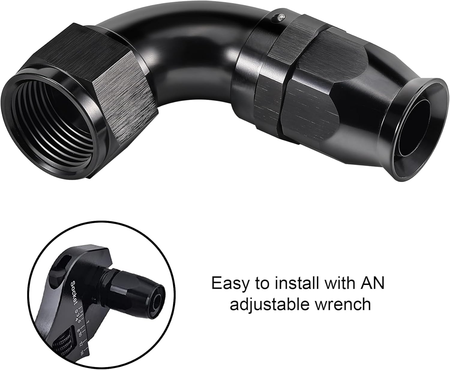 - [Built to Last] The one-piece PTFE hose end fitting is made from lightweight 6061-T6 aluminum alloy, and a black anodized finish on the surface increases durability, anti-corrosion, and wear resistance.