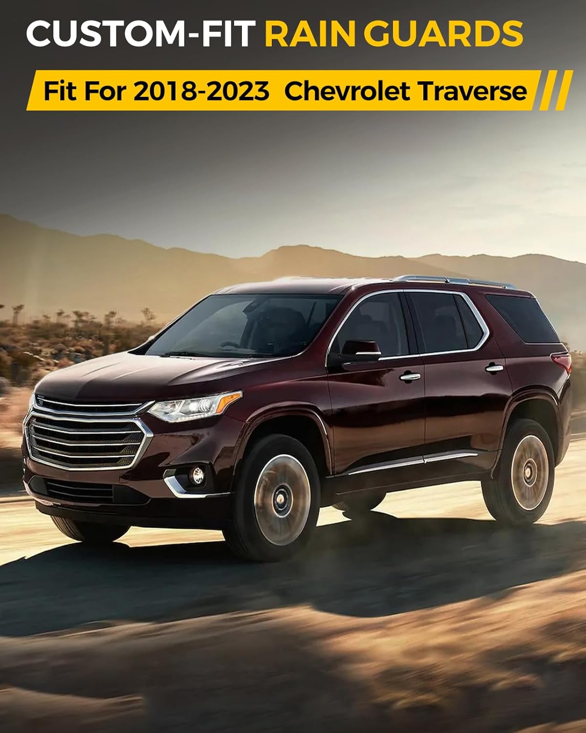 - 【Applicable Vehicles】The window visor is designed to fit your vehicle based on its year, brand, and model. These high-quality automotive window rain guards CUSTOM FIT only for Traverse 2018-2023.