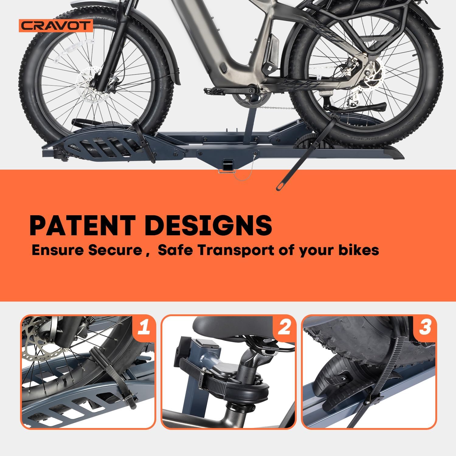 CyberRack E2 Hitch 2 E-Bike Rack with Ramp,200 lbs Capacity Electric Bike Carrier Foldable Platform Mount, Up to 5-inch Fat Tire Bicycle for 2'' Receiver Cars Trucks SUVs Minivans RV, Trailer