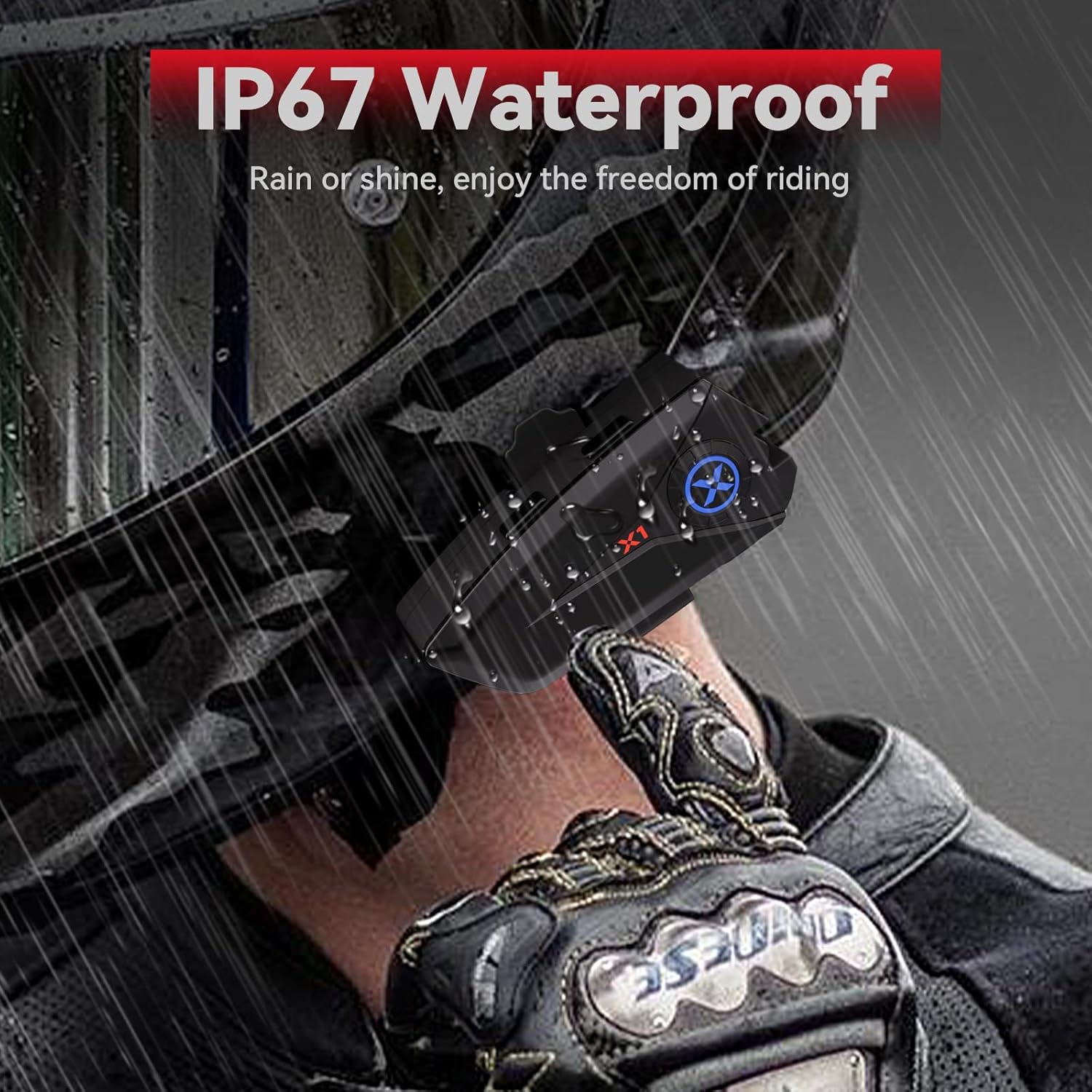- [800MAH Great Battery life & IP67 Waterproof] The X1 motorcycle helmet speakers equipped with 800mAh battery Life. In just 2 hours full charging, it can provide you with up to 60 hours of music playback/phone call experience and 360 hours standby time, allowing you to enjoy for all the whole day. Besides, the X1 bluetooth motorcylce headset features a comprehensive waterproof design with IP67 CLASS, with each component carefully sealed to effectively resist water ingress during your ride, allowing you to stay focused on the joy of riding.