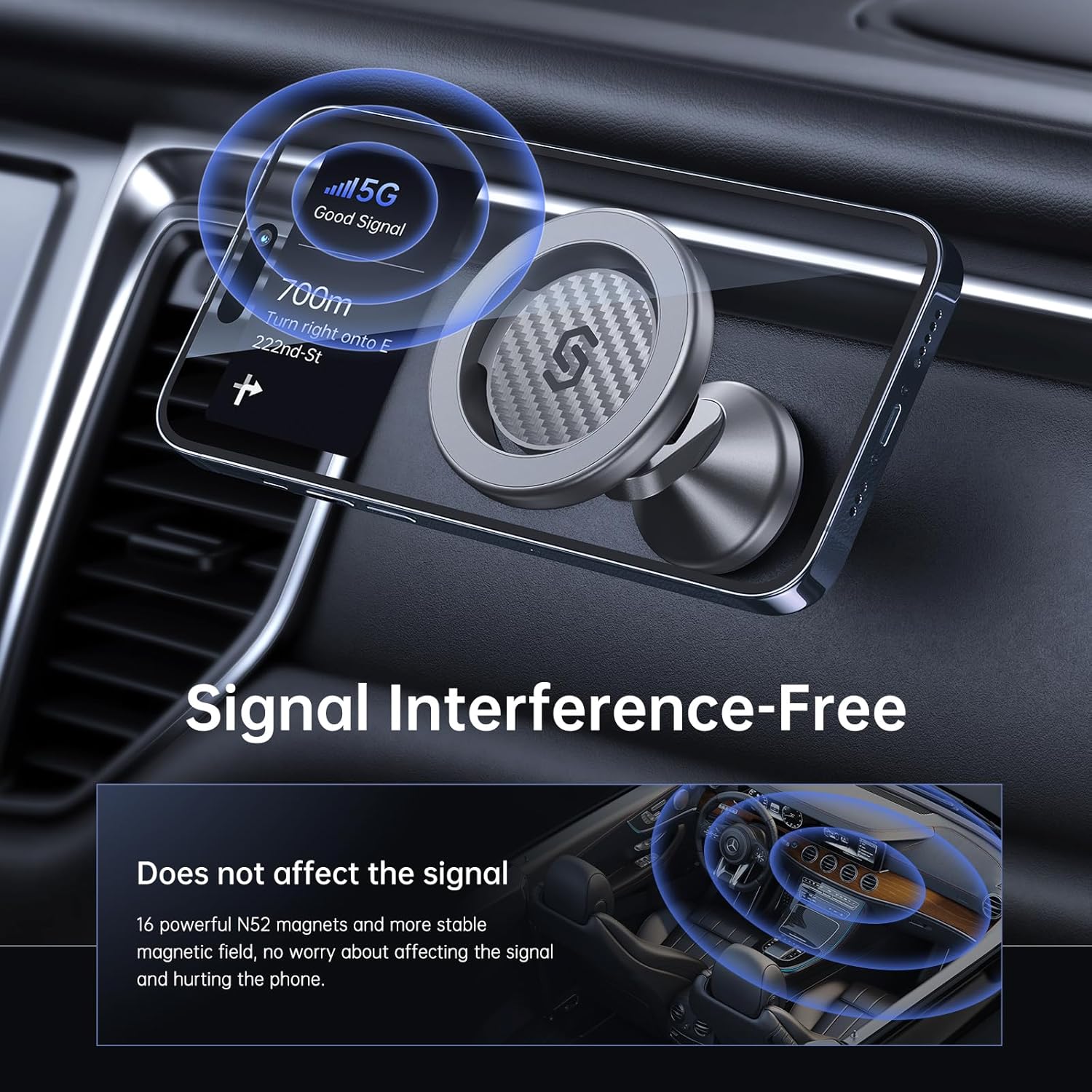 - 【No Signal Interference】Engineered with a circular ventilation head design, the MagSafe phone holder for the car ensures uninterrupted signal reception while reducing vent strain and maintaining optimal airflow for effective heat dissipation. Elevate your driving experience today with the MagSafe Magnetic Car Mount from SYNCWIRE and enjoy a driving journey that's both secure and dependable.