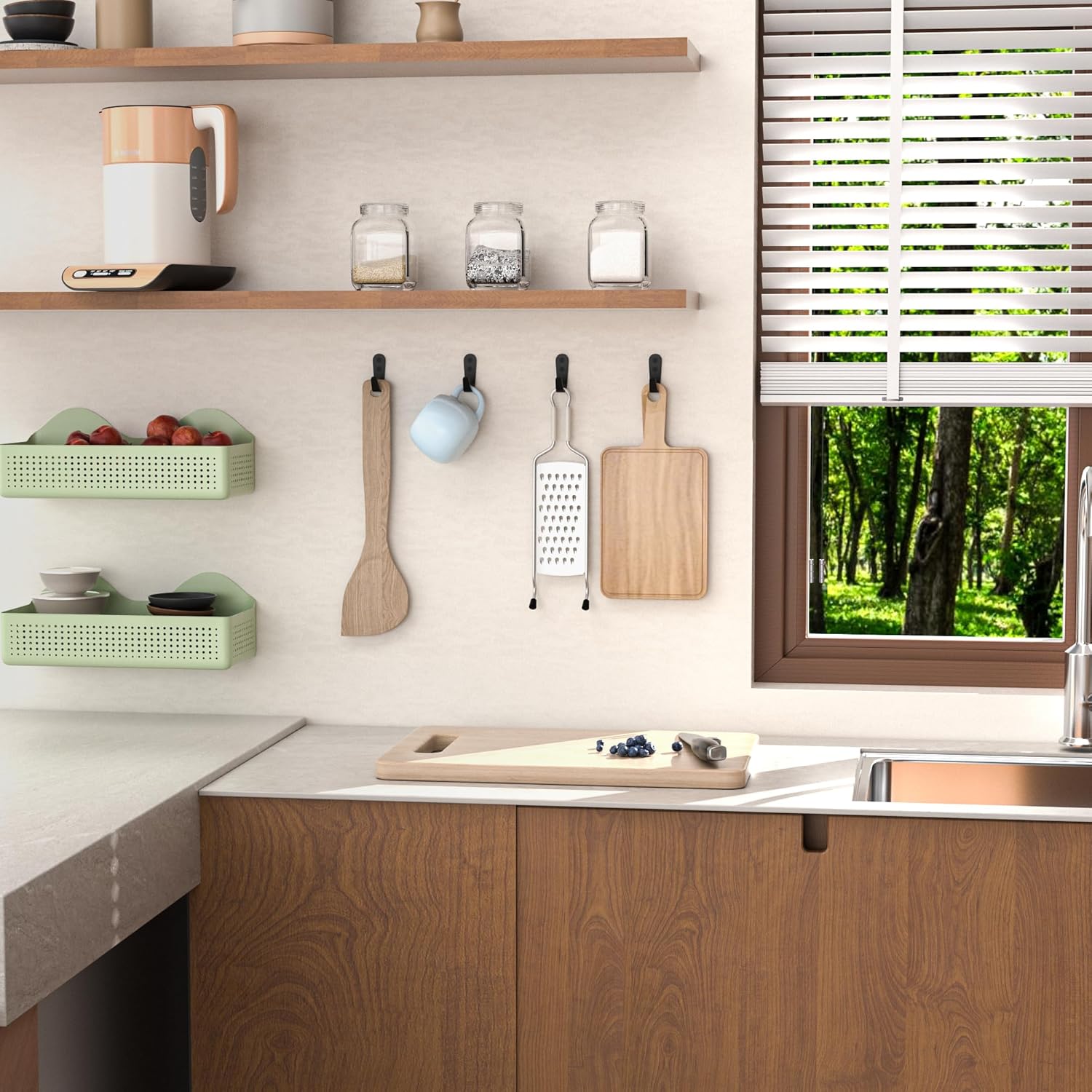 - Wide Application: You can use these hooks in bathrooms, closets, kitchen and garage, to hang various items, such as necklaces, coffee cup, cup, coats, belts, handbags, jewelry pieces, baskets, cooking ware, keys and so on