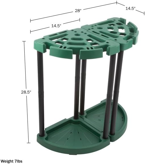 - PRODUCT DETAILS - Materials: Polypropylene Plastic. Dimensions: (L) 28” x (W) 14.5” x (H) 28.5”; Weight: 7lbs; Individual Section - (L) 14” x (W) 14.5”; 24 Storage Holes Per Tool Storage Organizer Section; 48 Storage Holes Total. Color: Green and Black.