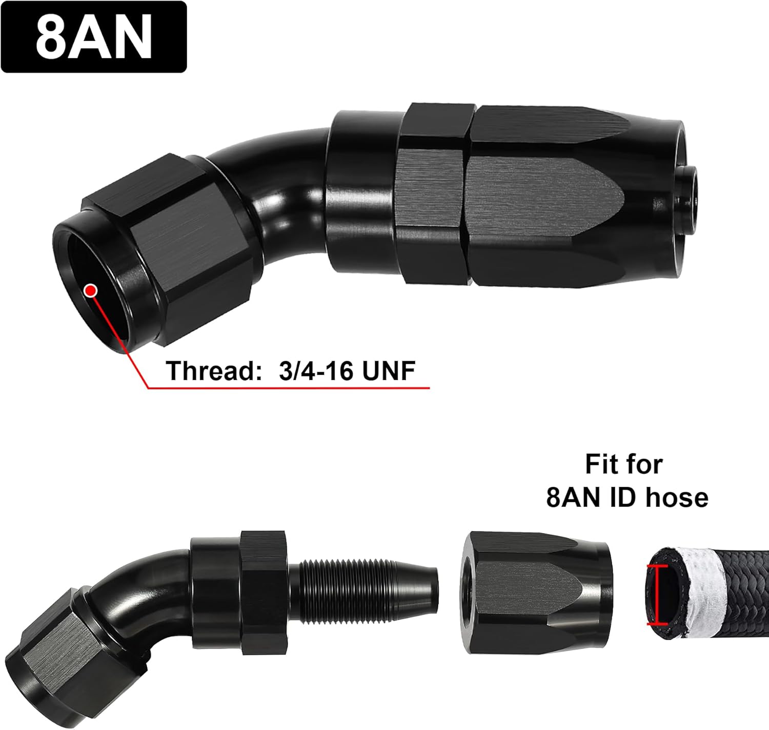 EVIL ENERGY 8AN 45 Degree One Piece Full Flow Hose End Fitting Swivel For CPE Braided Hose