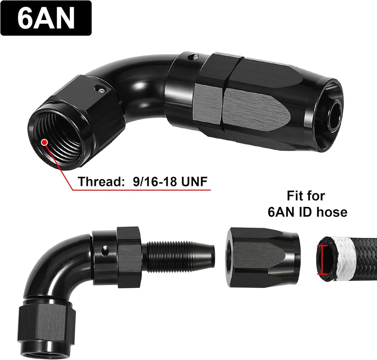 EVIL ENERGY 6AN 90 Degree One Piece Full Flow Hose End Fitting Swivel For CPE Braided Hose