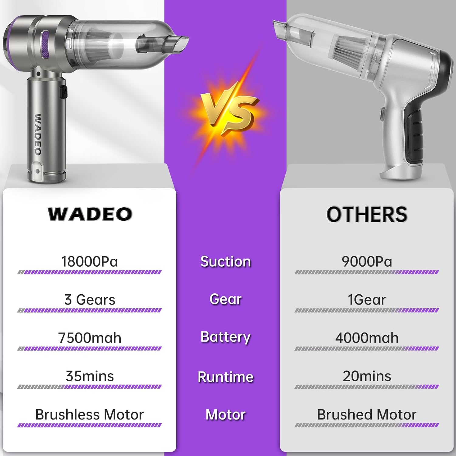 WADEO Handheld Vacuum Cordless, 4-in-1 21000PA Brushless Car Vacuum & 210000RPM Air Duster 7500mAh Battery Air Blower Wireless Handheld Vacuum for Car, Office and Home Cleaning