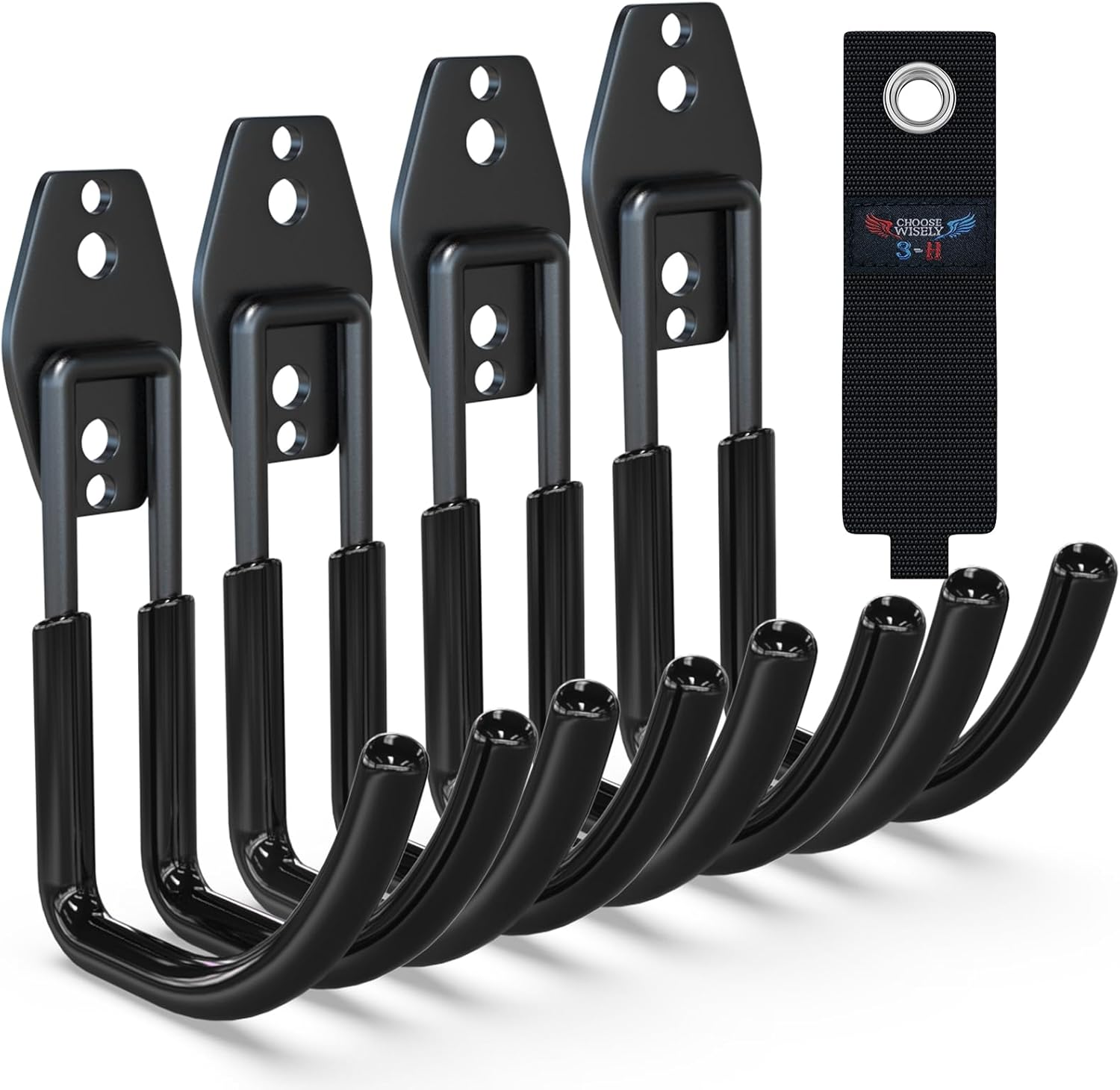 3-H Garden Hose Holder Wall Mount 4 Pack,Solid Steel Hose Hanger,Water Hose Holders for Outside,Perfect for Hanging Outdoor Air Hose,Ropes,Pipes,Garden Tools,Ladders,Bikes,Bulk Items(Black)