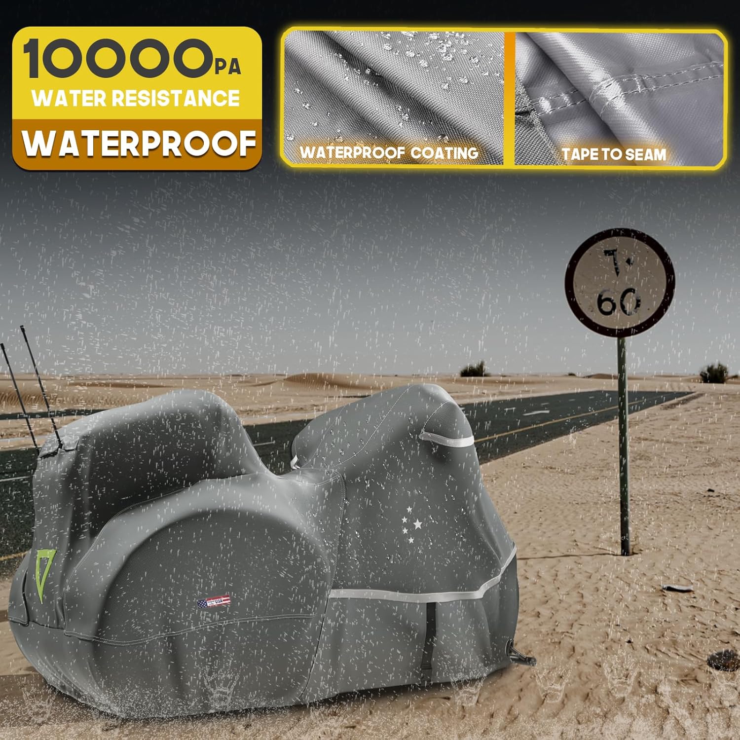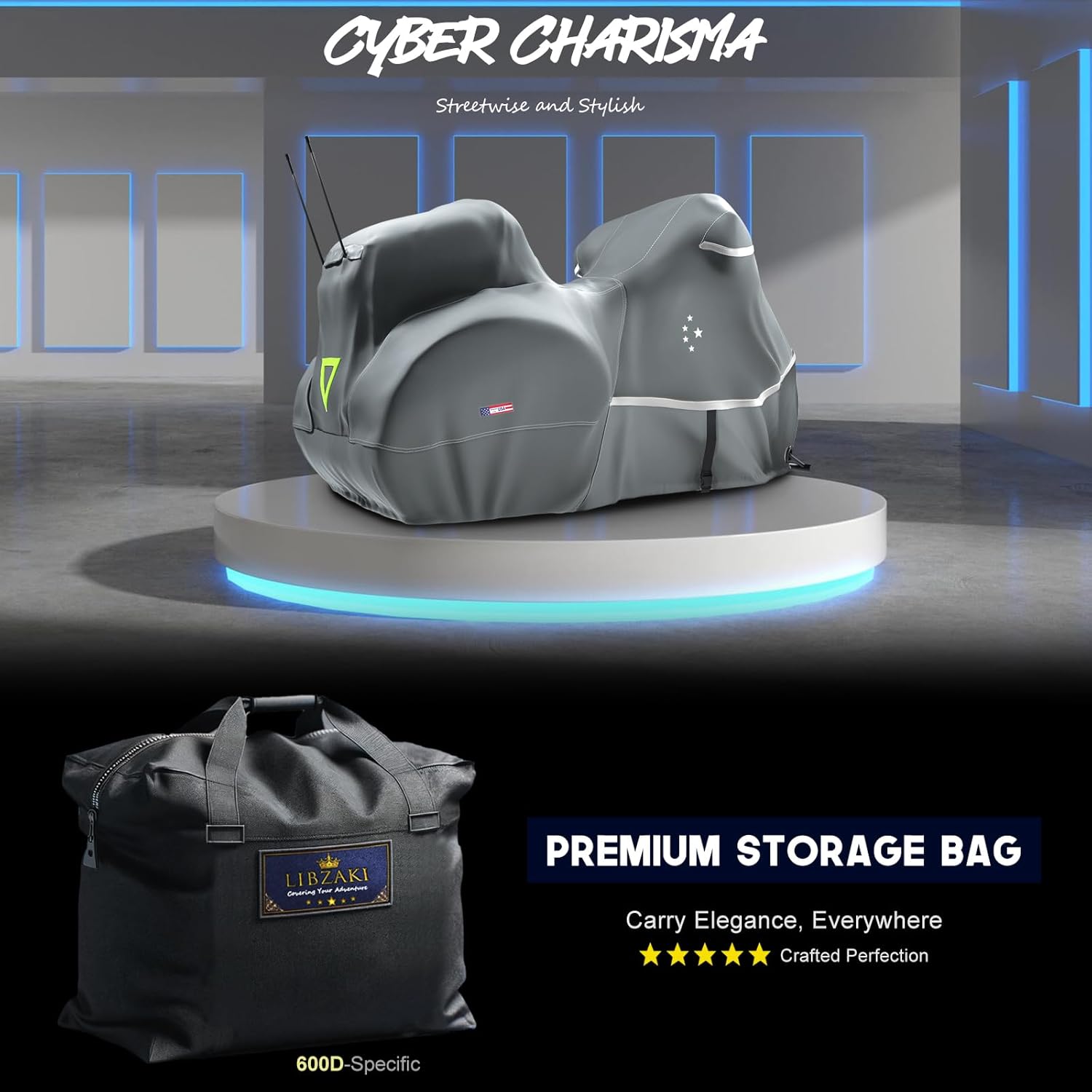 Motorcycle Cover with Side+Top Box LI LIBZAKI Heavy Duty 600D Waterproof for Touring Models Harley Davidson Ultra Limited,Road Glide Limited, Gold Wing,Road Master,Indoor & Outdoor Storage/Gray