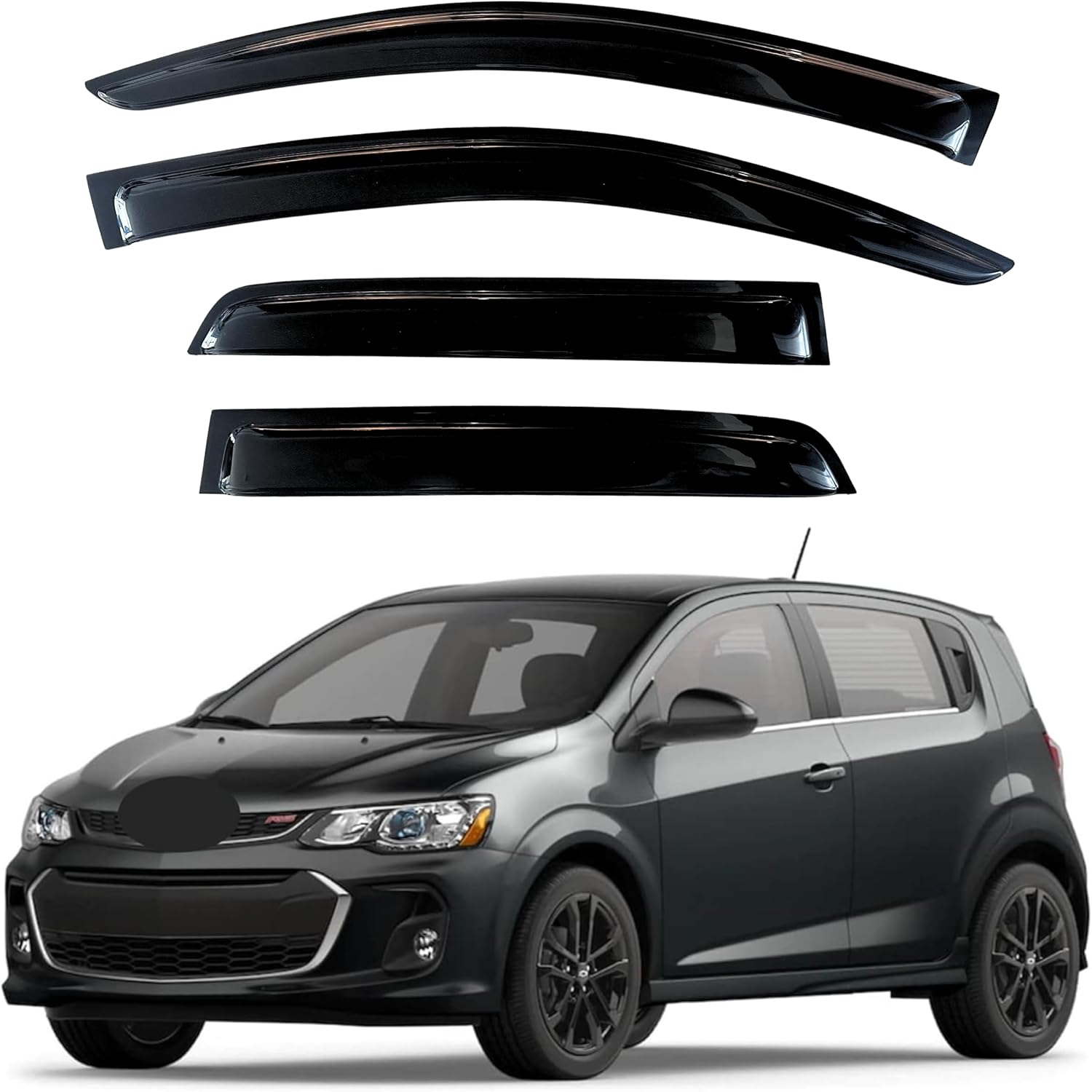 - 【Perfect Fit】KPY window visors rain guards vent deflectors compatible with Chevrolet/Chevy Sonic Hatchback 2012-2020 (5-Door)