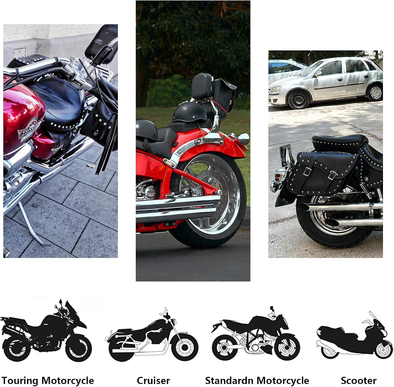 - 【Leather Material】This motorcycle saddlebags is made up of soft and durable heavy-duty PVC leather. The reinforced sewing and moderate thickness make our motorcycle saddle bag can always keep its shape and longer service life.