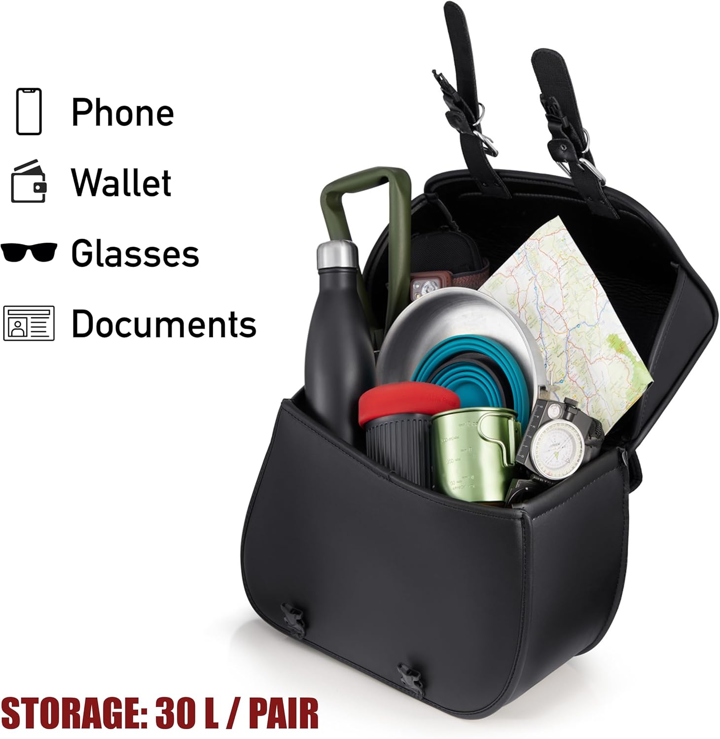 - Spacious Storage: Experience unmatched storage with these Nomad motorcycle saddlebags. Boasting a generous 30L capacity, these leather saddle bags mtorocycles offer plenty of space to accommodate all your riding essentials. Whether you need to pack clothing, tools, snacks, or other gear, these motorcycle saddle bags ensure you have everything you need for your journey. The roomy design allows for efficient motorcycle saddlebag organization, keeping your belongings easily accessible and secure.