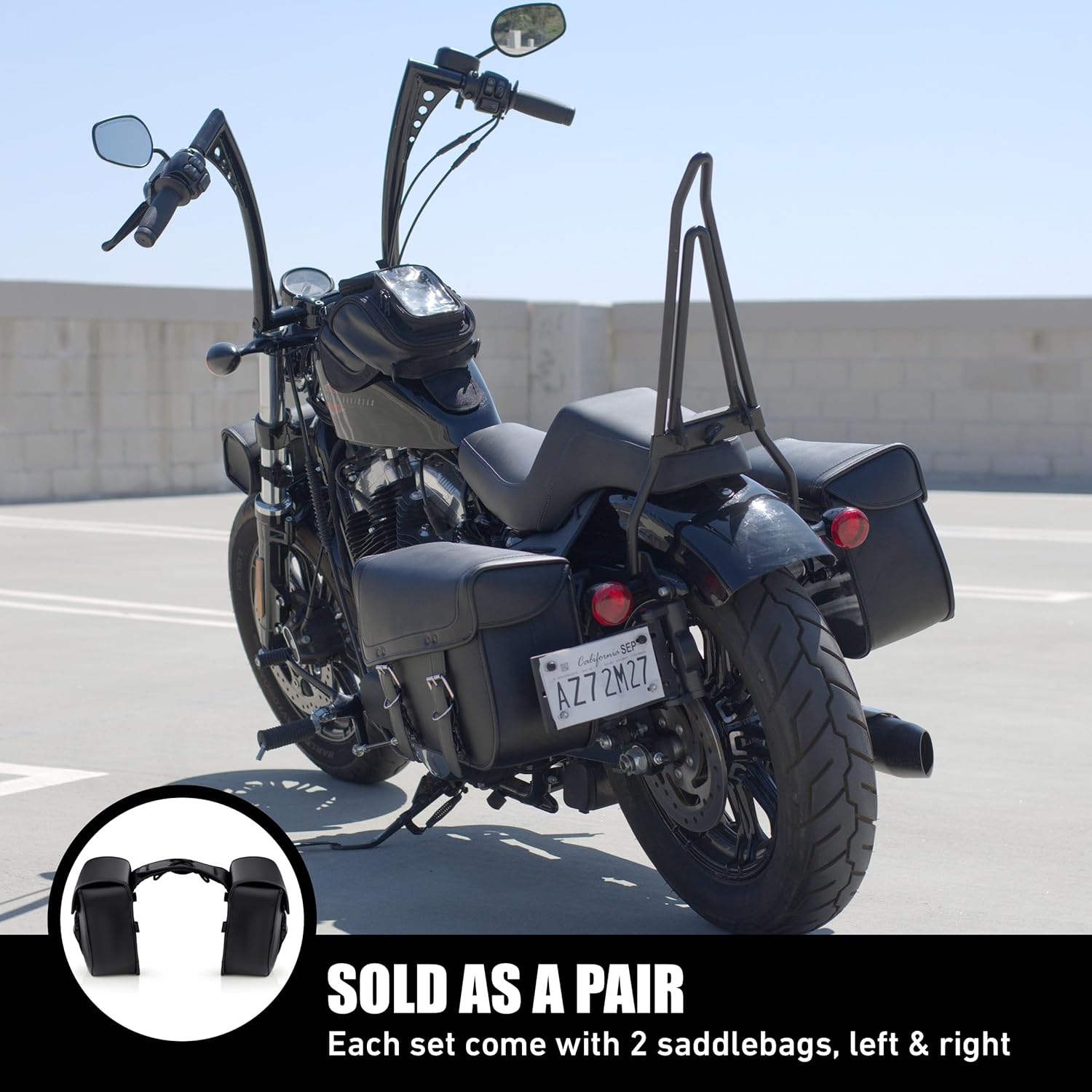- Classic Design: Elevate your motorcycle's style with the timeless elegance of black PU leather saddlebags. This refined material adds a sophisticated touch to your bike, seamlessly blending with its aesthetics. The classic design complements various motorcycle styles and colors, enhancing your ride's overall look with a sleek and cohesive appearance that stands out on the road.