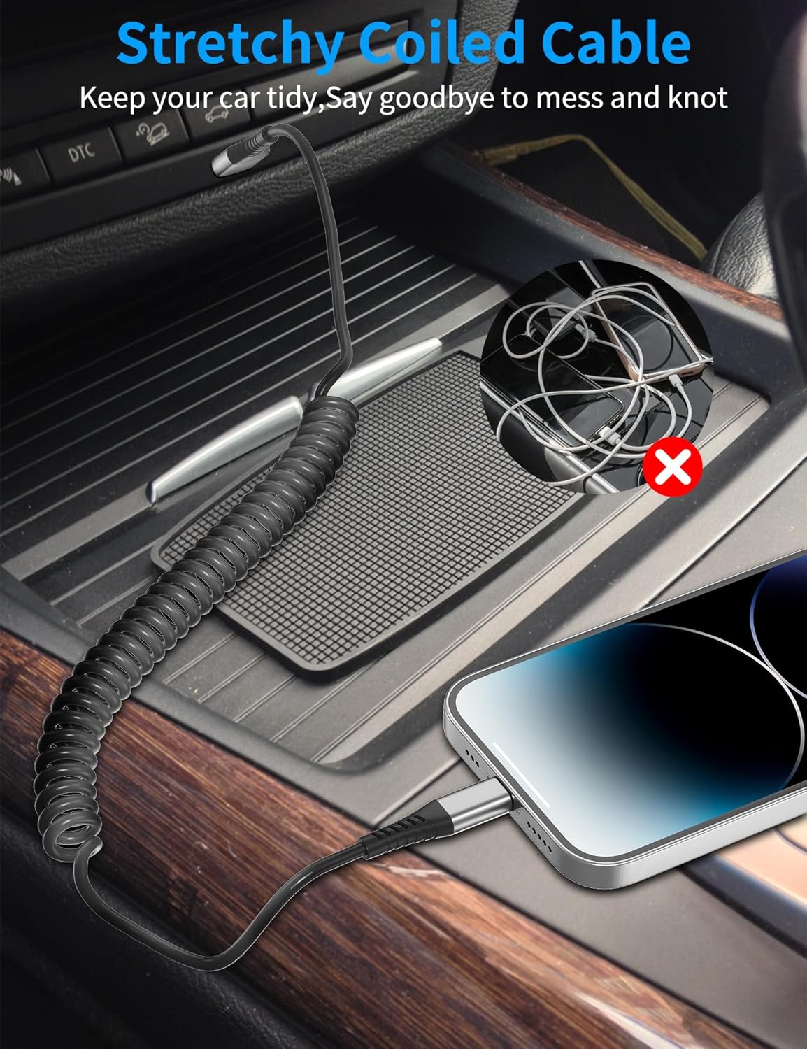- 【Coiled Lightning Cable For Car】The Lightning to USB C Cable 3 Feet features a retractable spring-loaded design with excellent stretch and toughness. It can extend up to 3 Feet, providing enough length for various scenarios such as in-car use, travel, home, office, cycling, and using with power banks. While not in use, it retracts to a compact 1FT length, making it easy to carry and keep your surroundings tidy.