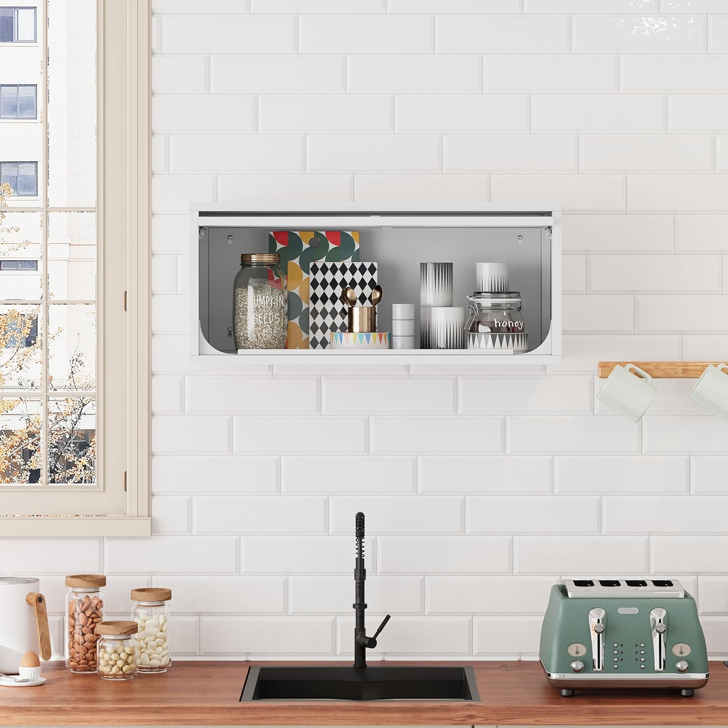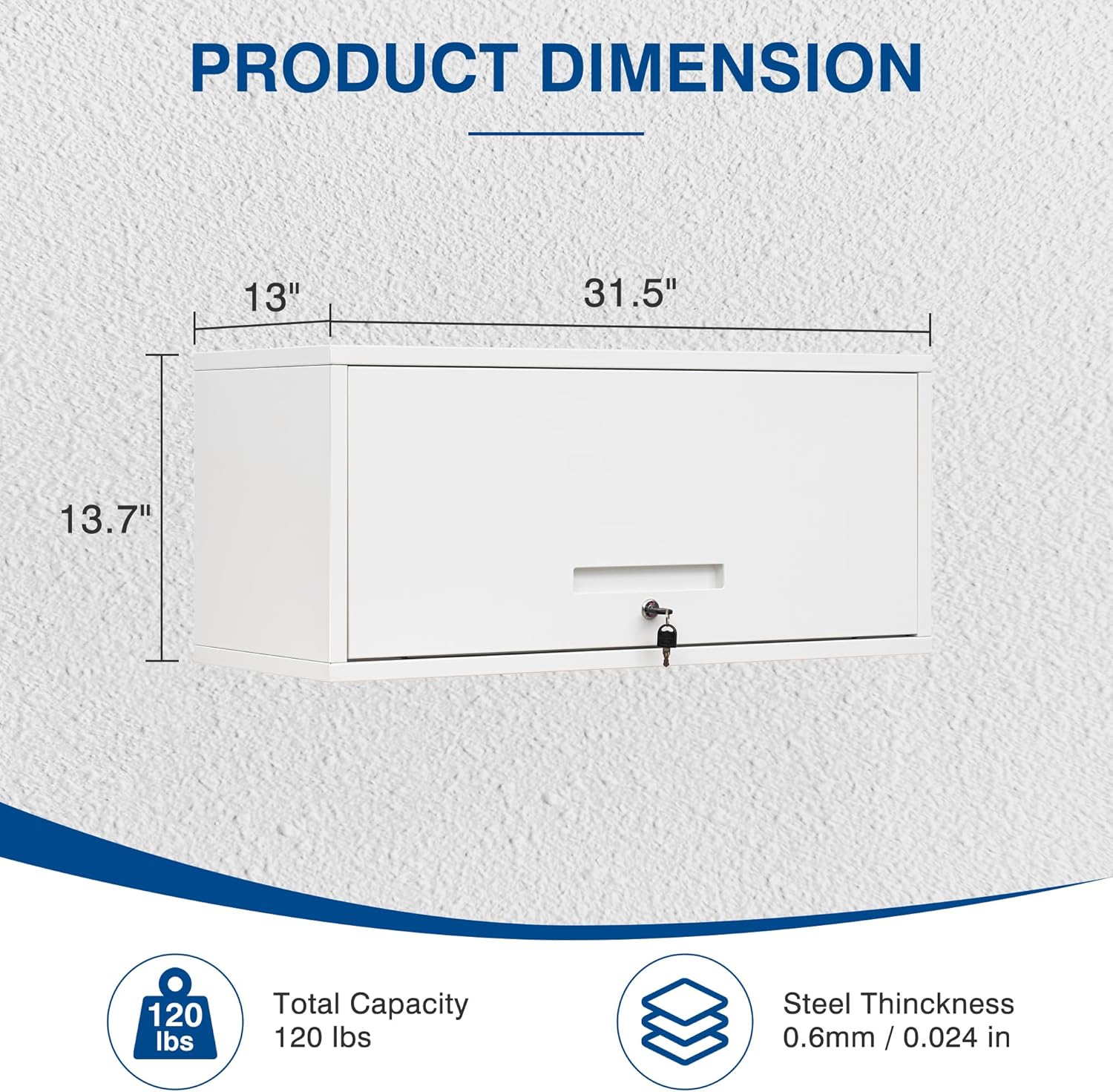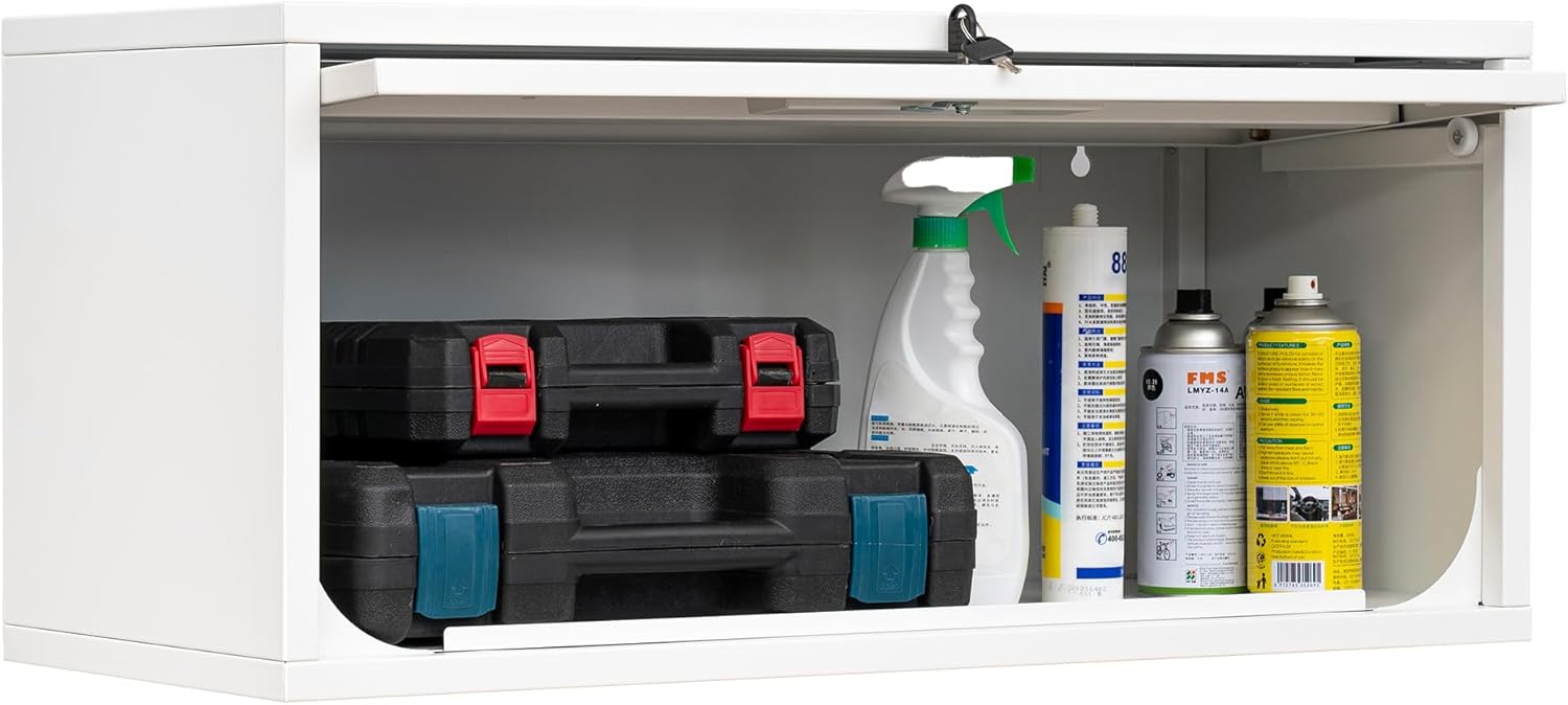 Metal Storage Cabinet White Wall Cabinets with Locking Door - Wall Mounted Storage Cabinet for Garage Warehouse Home Office - Assembly Required