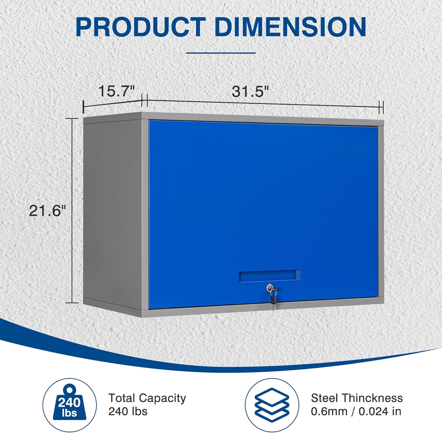 Metal Storage Cabinet Blue&Gray Wall Cabinets with Shelf and Locking Door - Wall Mounted Storage Cabinet for Garage Warehouse Home Office - Assembly Required