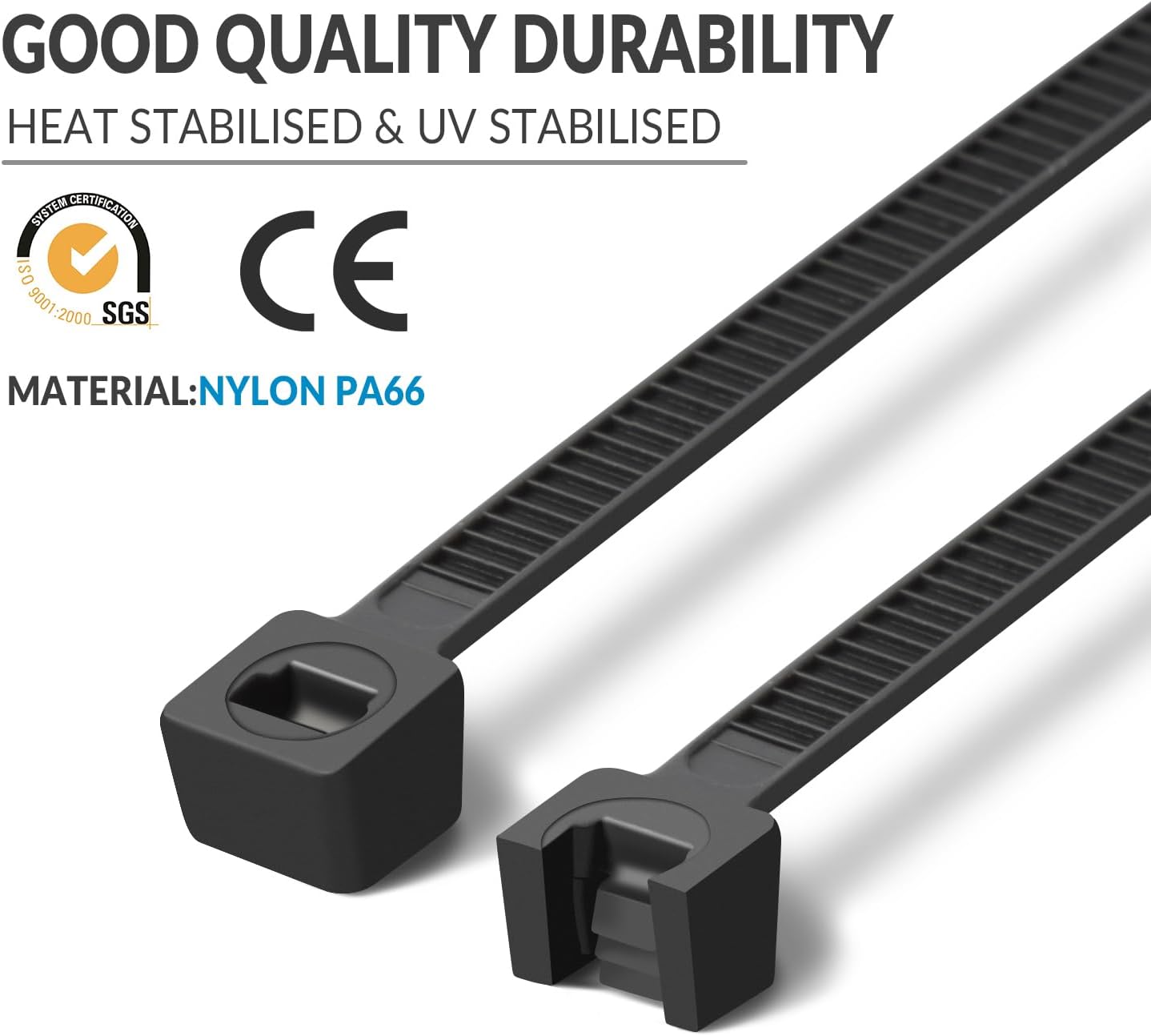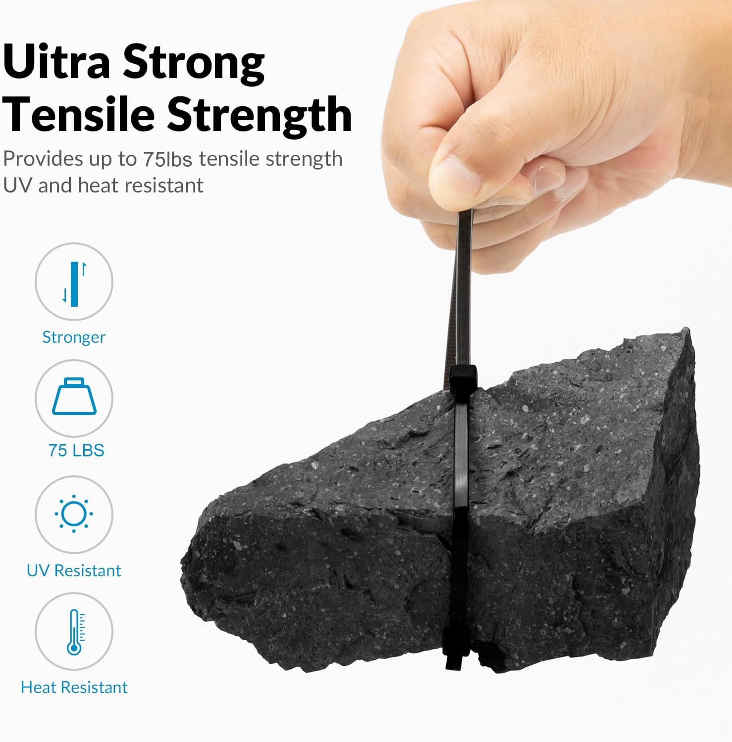 - 【Details】 Dimensions: Length: 12" | Width : 0.19" | Max Dia: 3.2" |Tensile Strength: 75 lbs | With 1200 PCS zip ties, you don't have to worry about running out of in the middle of your project.