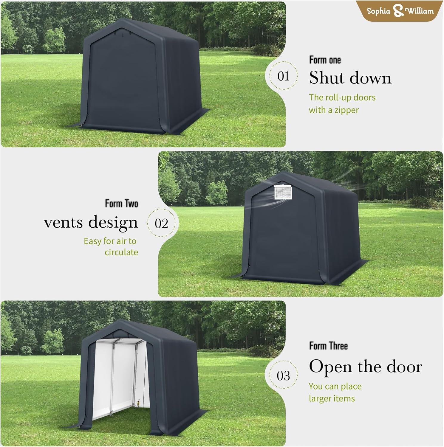 Sophia & William Outdoor Storage Shed Carport 6x10 ft Heavy Duty, Portable Garden Yard Car Port Shelter Storage Tent Garage with Roll Up Doors and Ventilation, Grey
