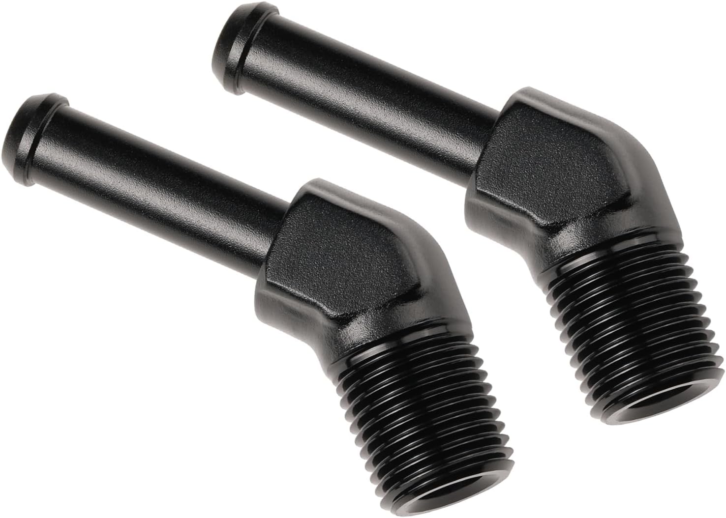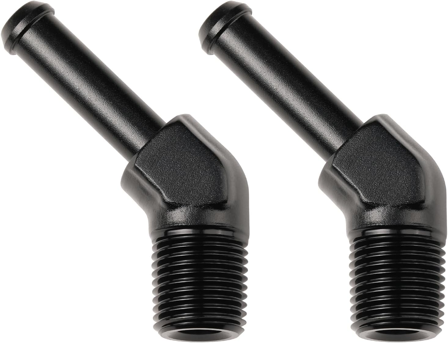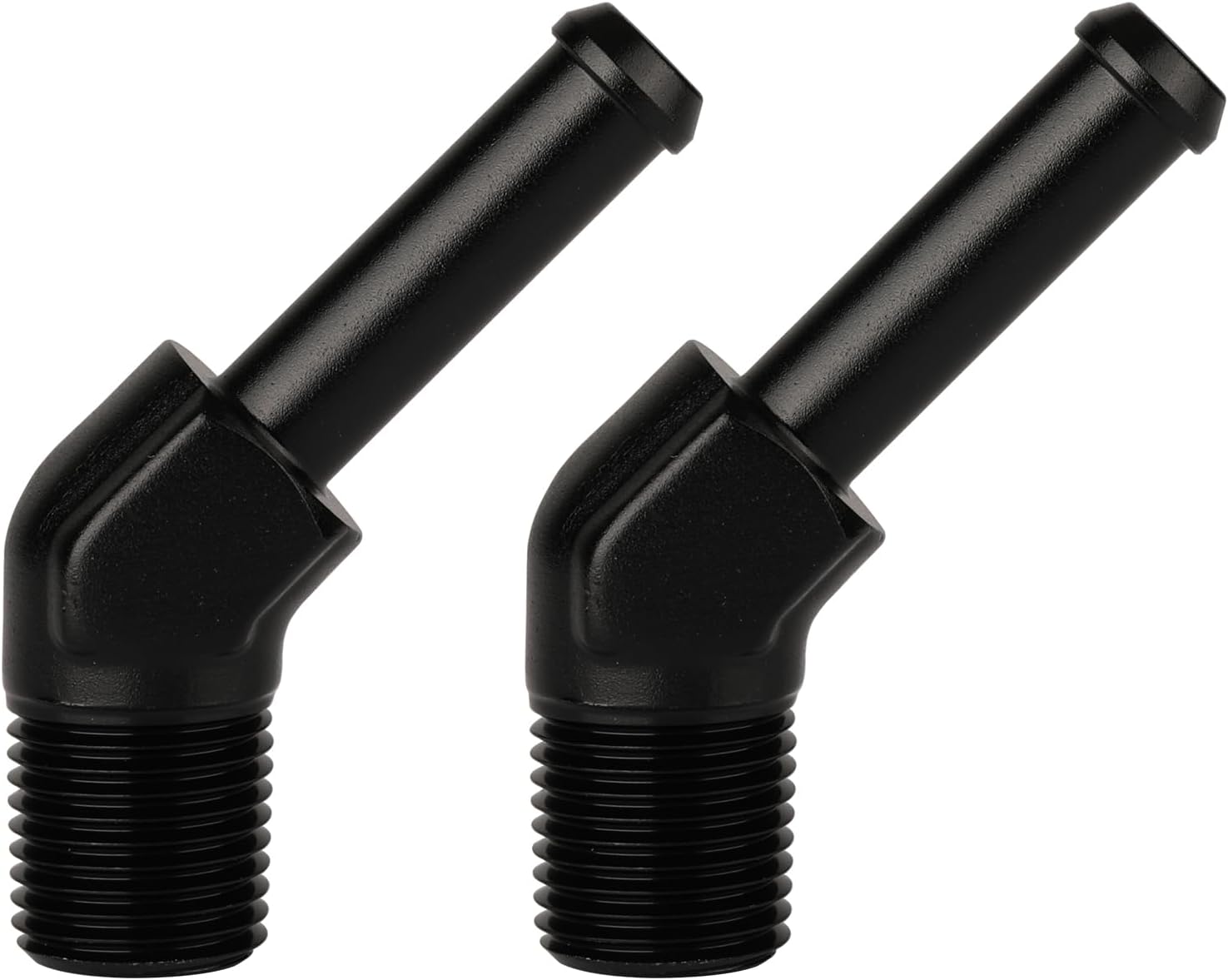 - Size: 1/8" NPT to 1/4" hose barb, 45 degree, Pack of 2