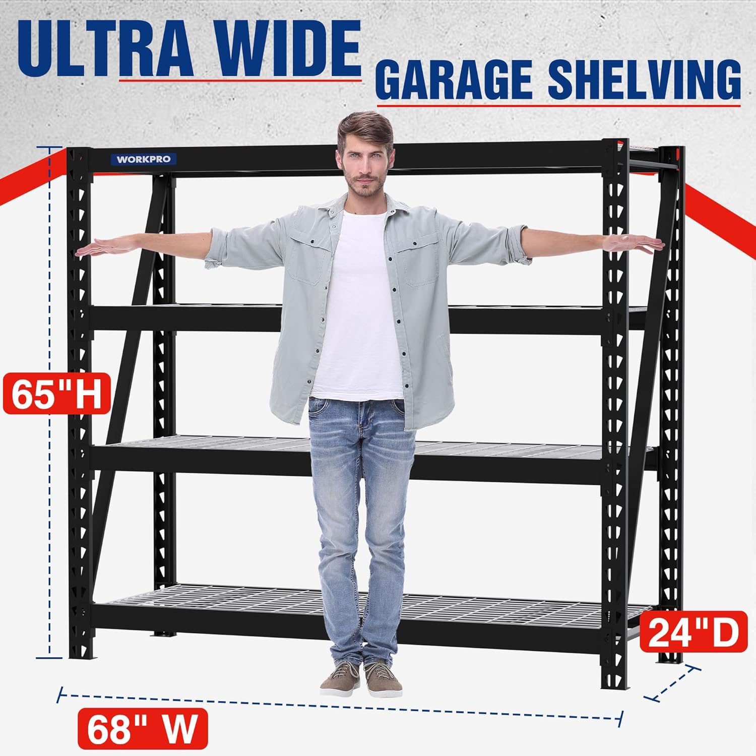 WORKPRO Garage Shelving, 68" W x 24" D x 65" H, 7200 LBS Load, Heavy Duty Metal Shelving for Storage, Industrial Shelving Storage Rack for Warehouse Kitchen Shop Basement, Black, Pack of 2