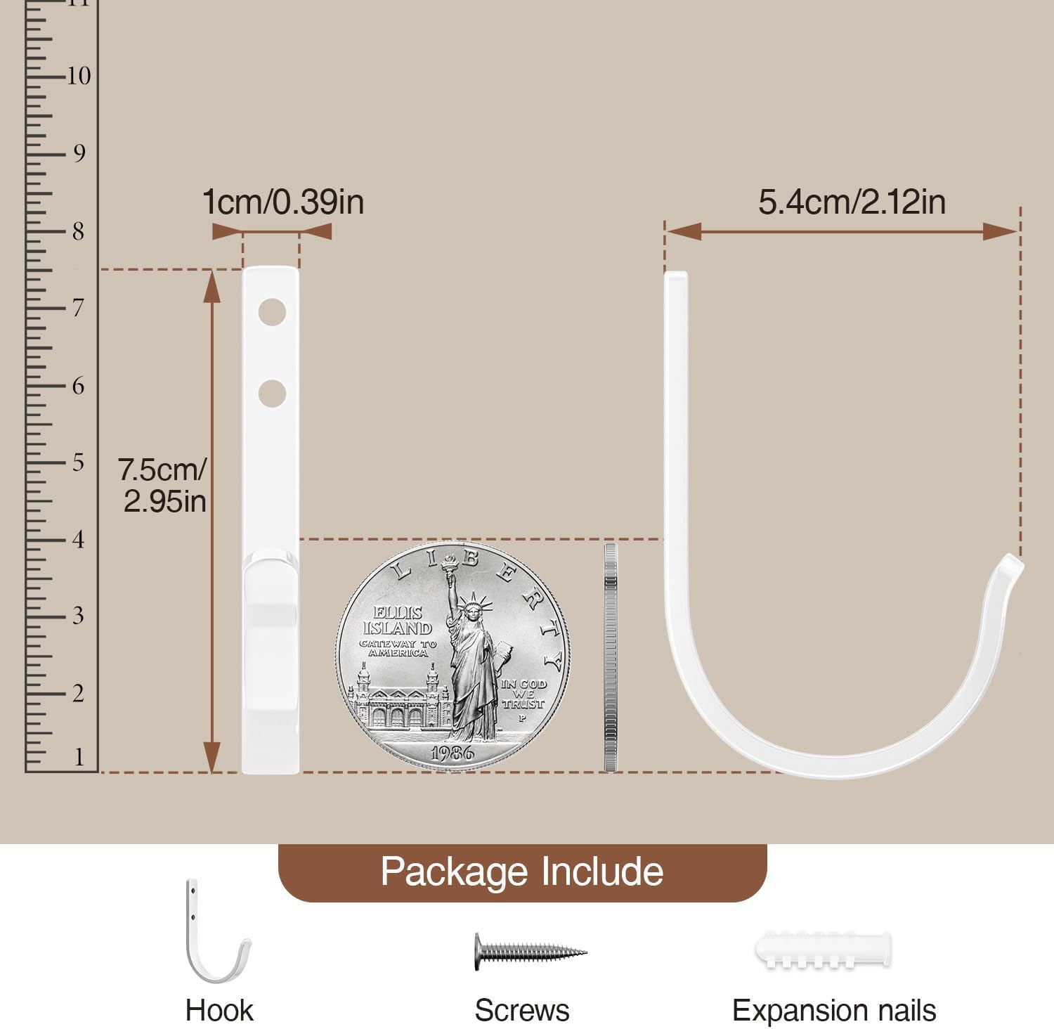 10-Pack Wall Hooks for Towel/Coat - 22LB Heavy Duty Metal Hanger Wall Mount, for Outdoor, Closet, Door, Shelf, Bathroom, for Backpack, Cup, Clothes, Mug, White Matte Screws Included