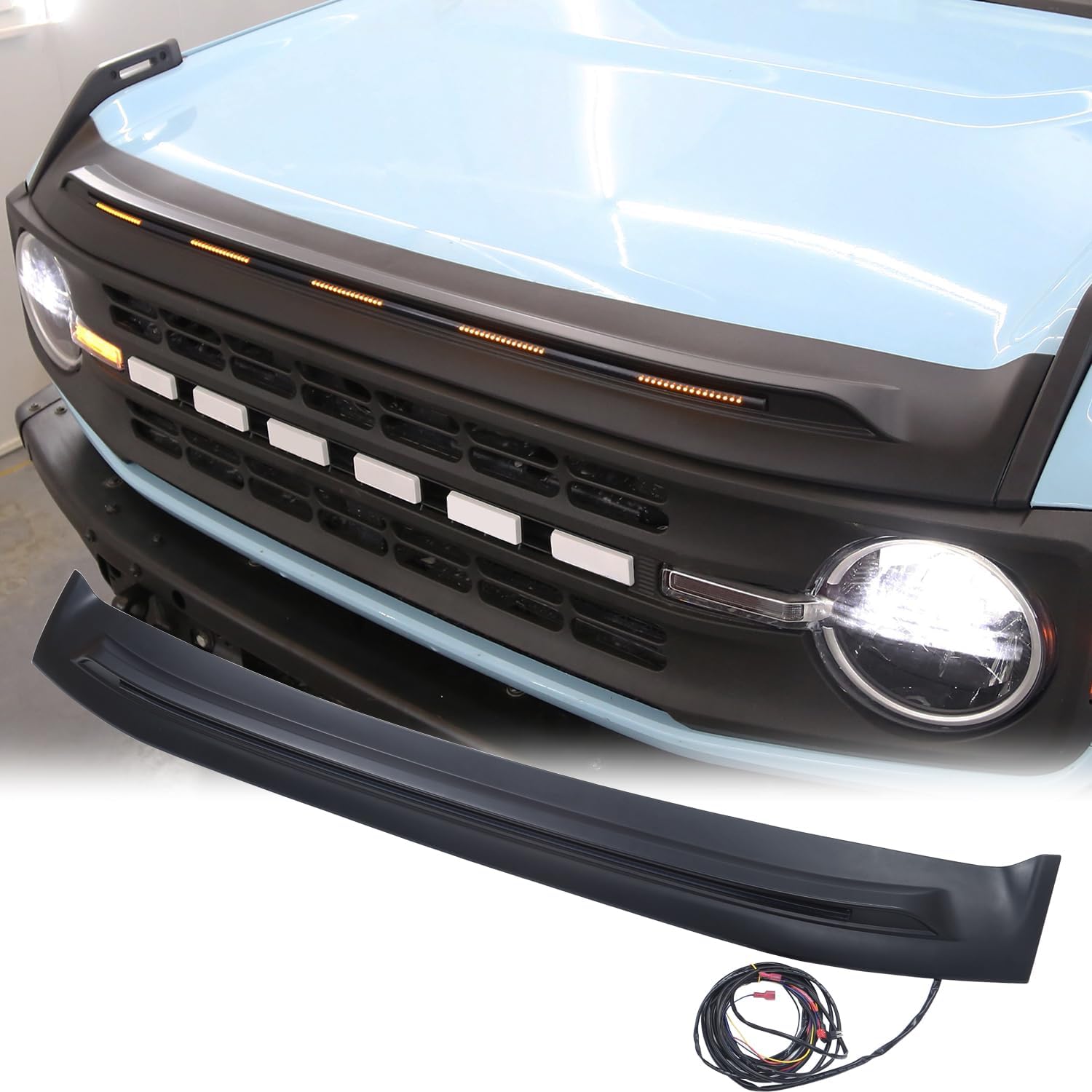 - Fitment - The bug shield hood deflector with amber light is custom designed for Ford Bronco 2024 2023 2022 2021 2 door/4 door. Not for Bronco Sport.