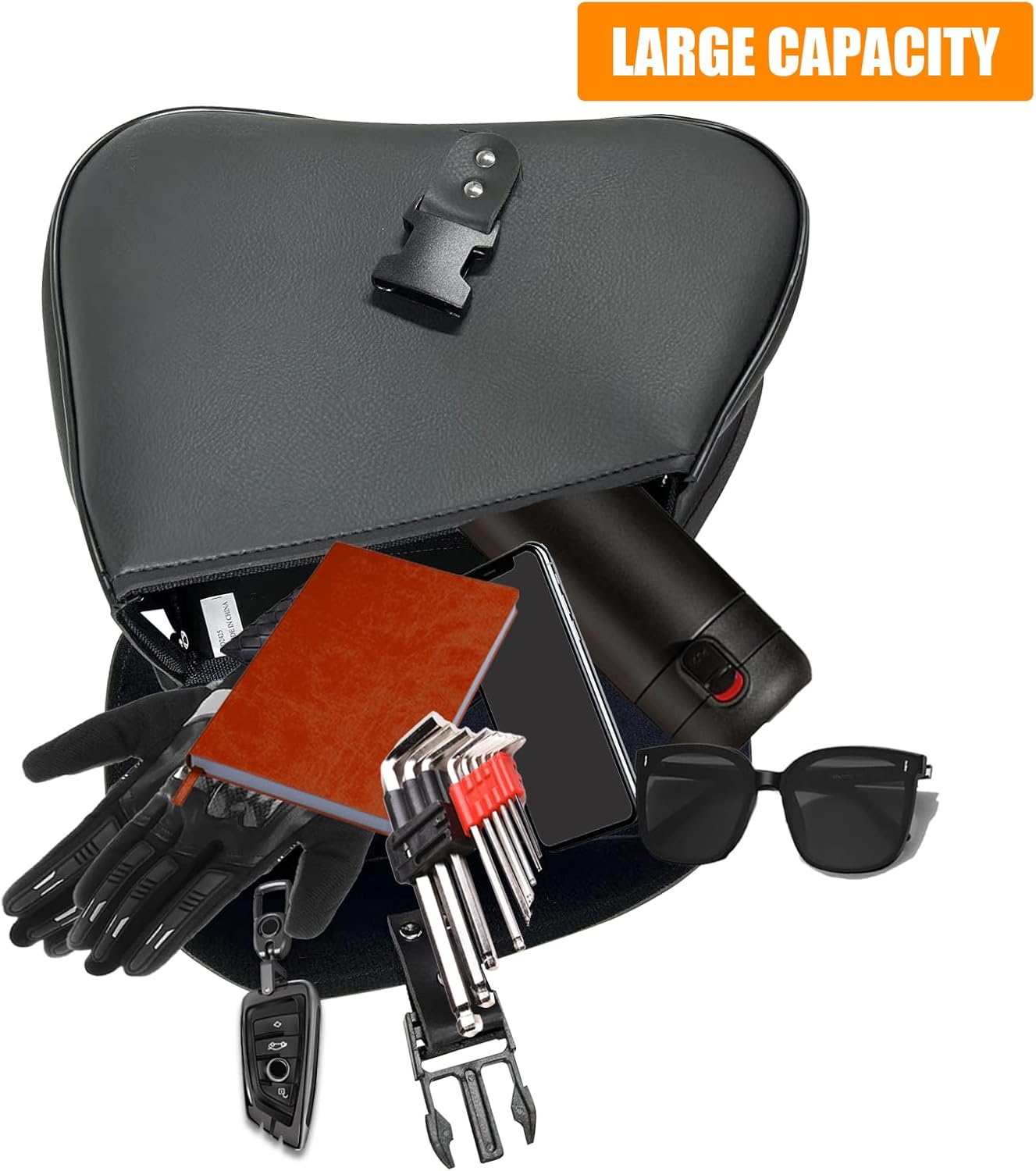 - 【Universal Application】Our PVC leather motorcycle tool bags can be attached to most brands of motorcycles and bicycles. Including but not limited to Sportster, Softail, Dyna, Road King, V-star, and Shadow. And it's a perfect gift for friends, family and loved ones.