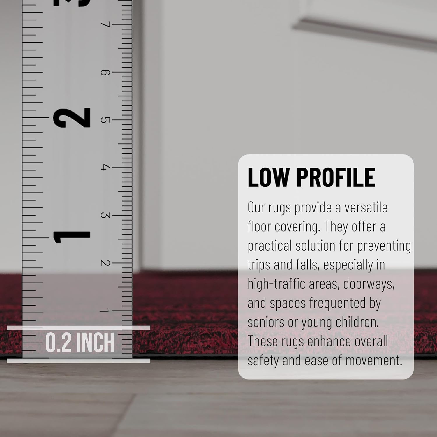 - [ULTRA THIN PILE]: A ultra thin pile thickness of 0.2 inches offers ideal functionality that is perfect for busy areas, underneath furniture, and in entryways as it will not obstruct doorways.