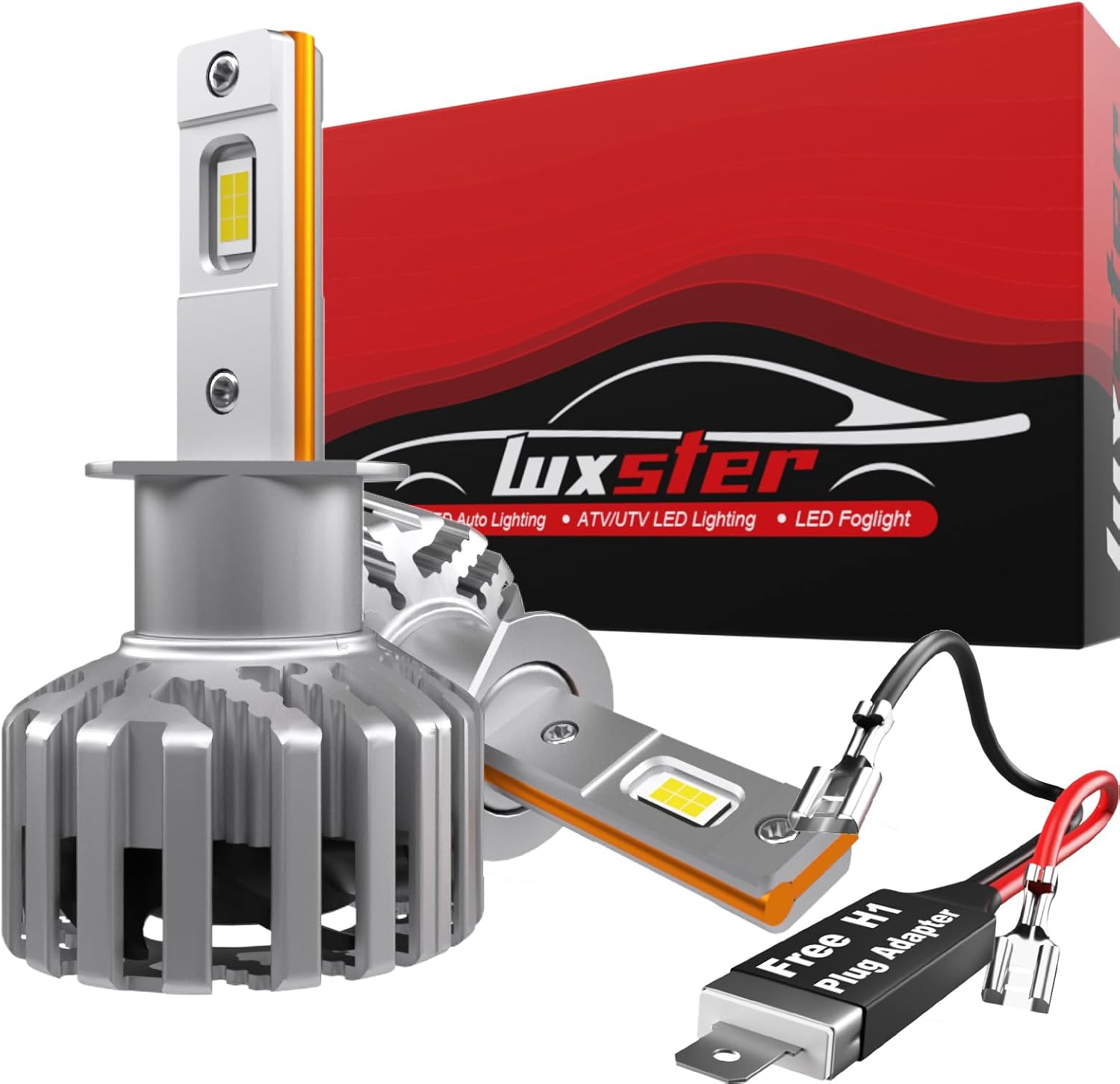 LUXSTER HolyKnight H1 30000lm 55W LED Light Bulbs, Foglight Bulbs, H1 Plug Adapters Included, TalonLED Super Bright, 6000K Cool White, Pack of 2