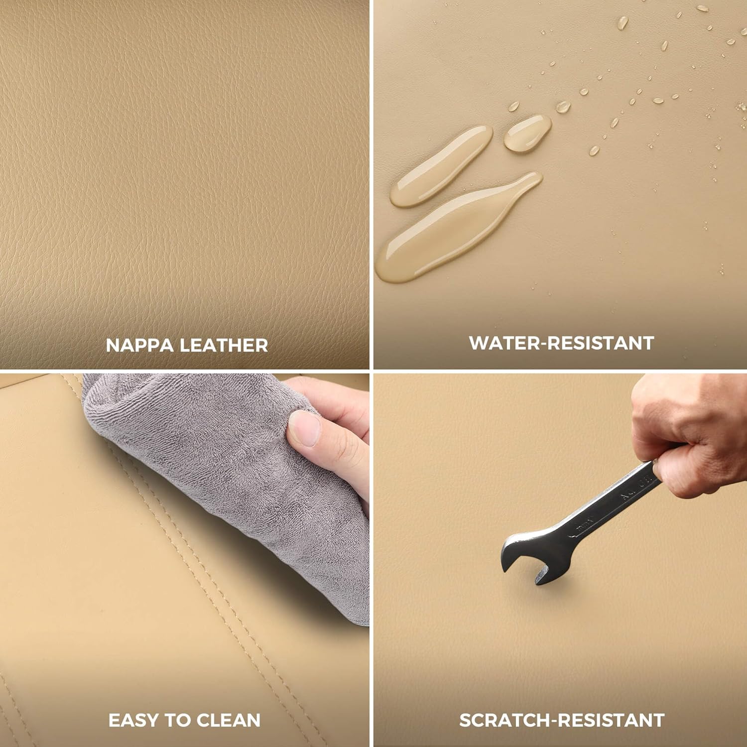 - Nappa Leather Seat Covers - The Nappa leather seat covers are soft, luxurious, and provide an excellent touch. They are durable, resistant to scratches, easy to clean, waterproof, and do not collect dust. They offer a comfortable driving experience and protect your seats. It's time to give your car a fresh look with a different colored set of seat covers.