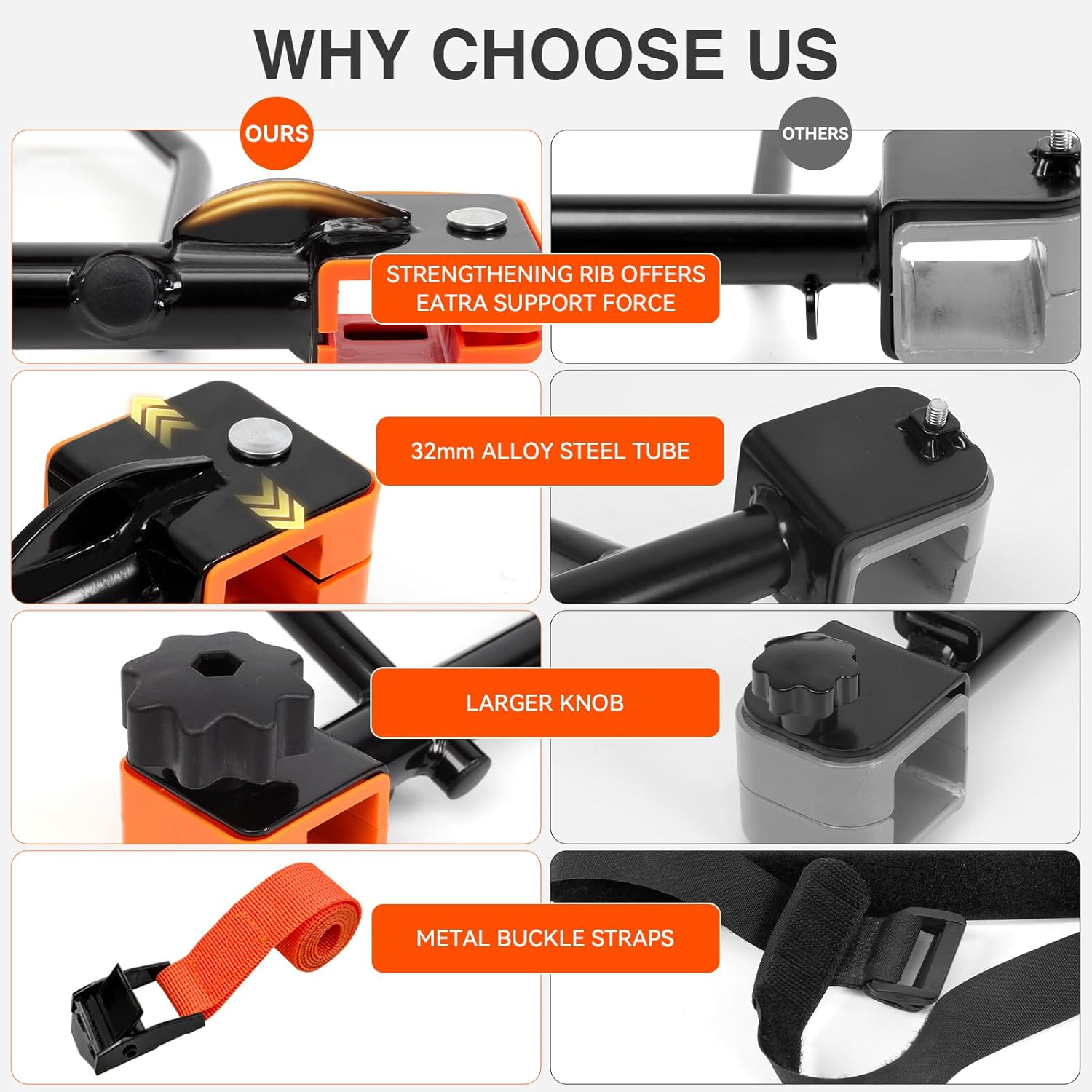 - 🚴【HEAVY-DUTY CONSTURCTION】: Built with high-strength alloy steel to support up to 180 lbs, accommodating two bikes of various sizes and types, including eBikes, mountain bikes, and road bikes.