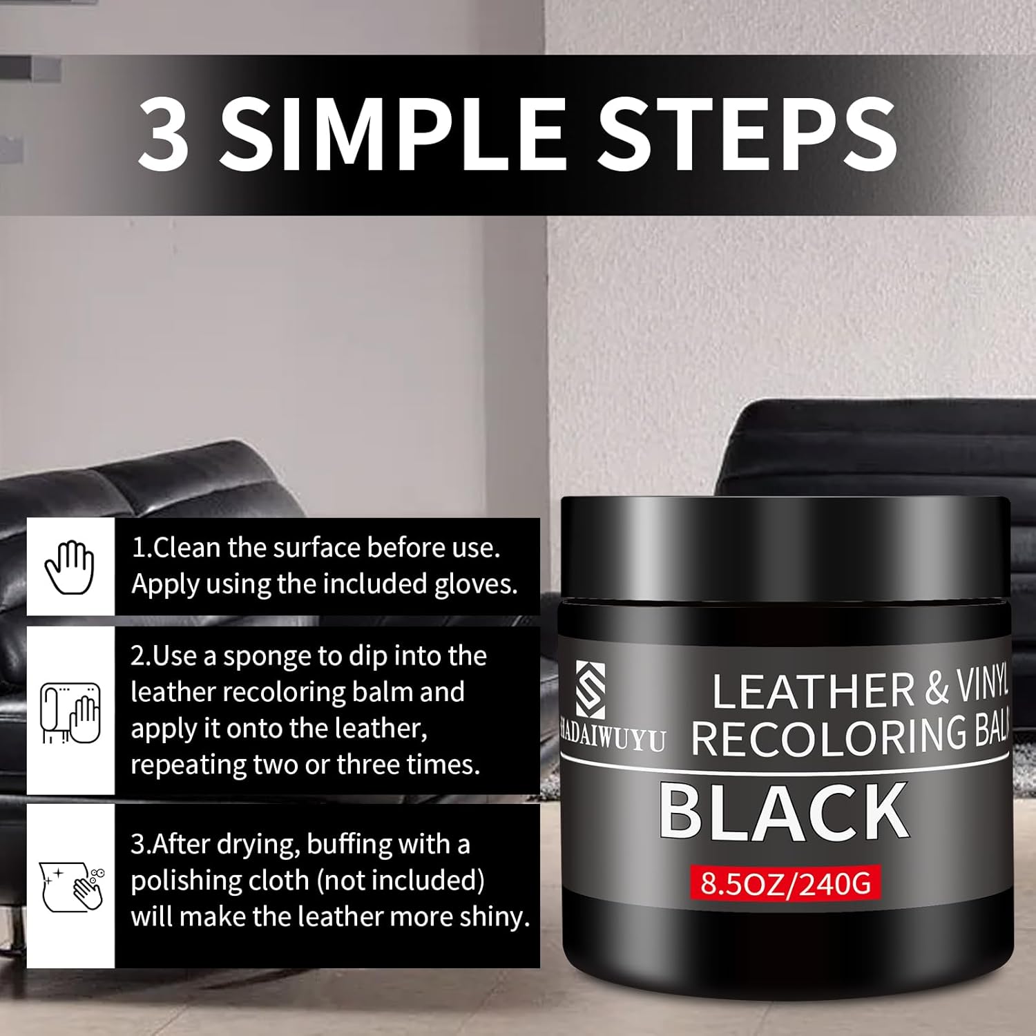 Leather Recoloring Balm,8.5oz Leather Color Restorer,Black Leather Repair kit for Furniture and Car Interior,Leather Couch Scratch Repair,Leather Dye Paint for Faded,Cracked and Damaged Leather