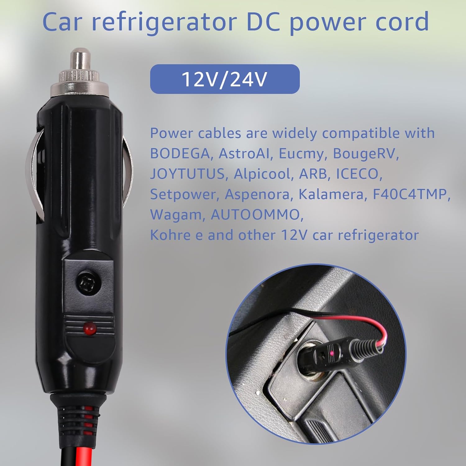 - Widely used: 12V/24V DC portable car refrigerator power cord, suitable for portable car refrigerators, 12V refrigerators, RV portable freezers. It can be used in conjunction with 12V to 24V wires for electric coolers in cars, RVs, trucks, trucks, and ships