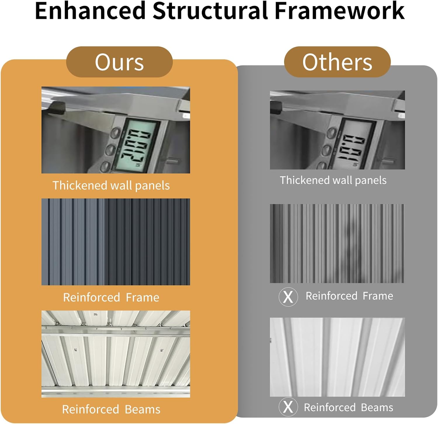 - 【Upgraded Frame Structure】The storage shed features an improved frame structure, making installation easier and enhancing overall stability. It's perfect for keeping your backyard organized as an outdoor tool shed. Plus, the protective film prevents scratches.