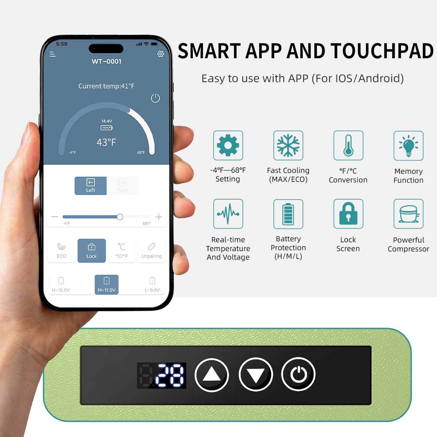 - High Efficiency &Low Energy Quiet: 12 volt car refrigerator uses the most advanced compressor and DC compressor refrigeration technology, In "MAX" mode, it only takes 15 minutes to quickly cool from 50℉ to 32℉, and 50 minutes to reach the lowest temperature of -4℉,In "ECO" mode, mode maintains constant temperature to save energy, and you can choose MAX fast cooling and ECO economic energy saving mode between -4℉ to 68℉ according to your needs,the average energy consumption of our car fridge is only 36W, making it the ideal companion for the eco-aware consumer. The fridge cooler is 40dB low noise level and provides you with a quiet and comfortable environment when running