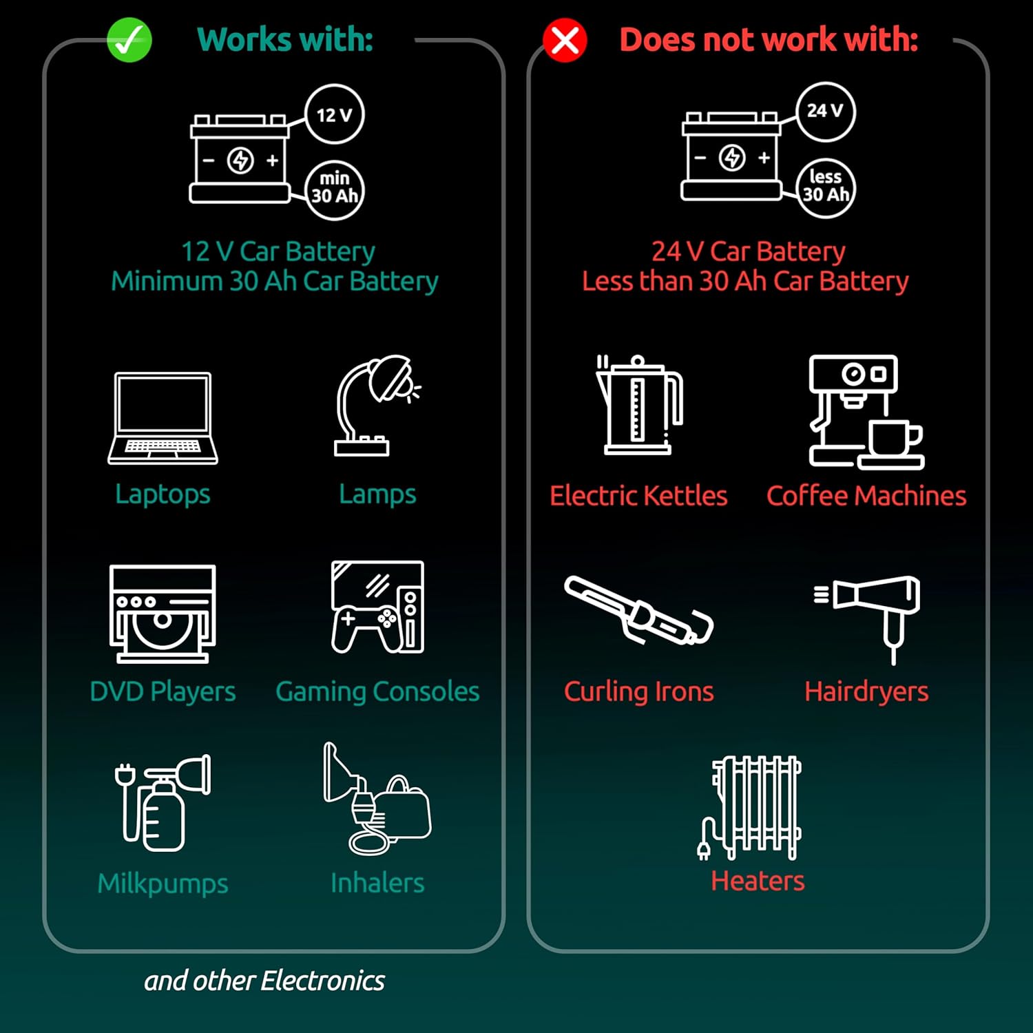 - Recommended Uses For Product : Car, Travel, Camping, Laptop, Smart phone, Small electronics