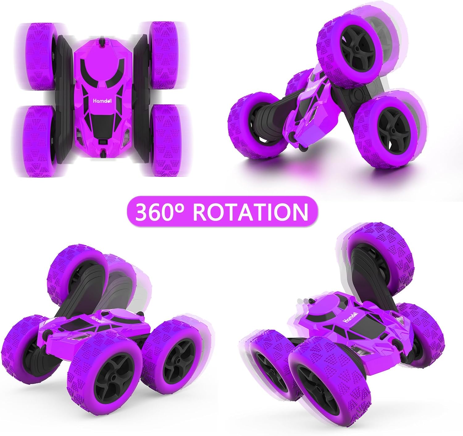 Remote Control Car for Girls, Stunt Rc Car, Princess Toys for Girl 6 7 8 9, Electir Toy, Double-Sided 360° Rotating 4WD Rc Drift Truck for Birthday Gift (Purple)