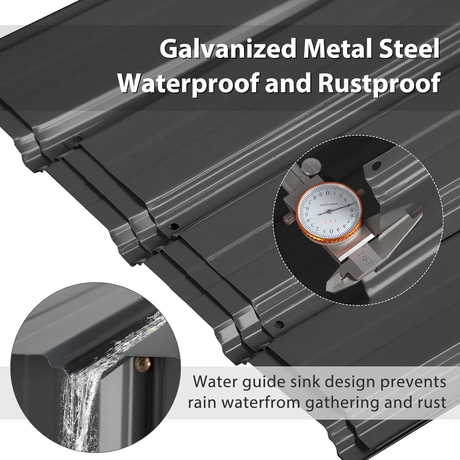 - 🏡【All-weather Sloped Roof】-With inclined slope roof, the steep angle allows for quick drainage of rain and snow and provides a spacious walk-around interior and headroom. Heavy-duty steel trusses increase strength. Worry-free for all weather conditions, this outdoor garden tool shed can be used all year round.