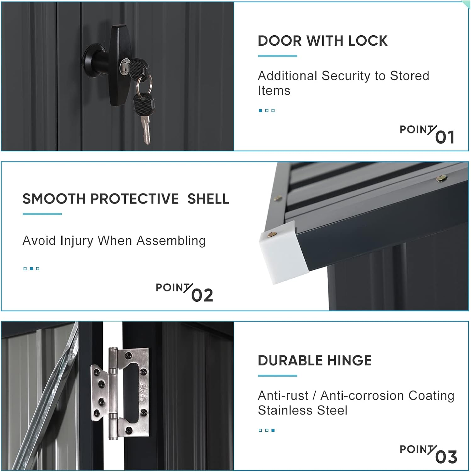 - 🏡【Multifunctional Use】-This quality outdoor storage shed door dimension is 62.8"H ×47.64"W and the full inner height of the shed is 76.38 inches, allowing for plenty of walking around space and organizing options.for work tables and equipment Perfect for outdoor, backyard, garden, patio, utility tool house, and pet house.