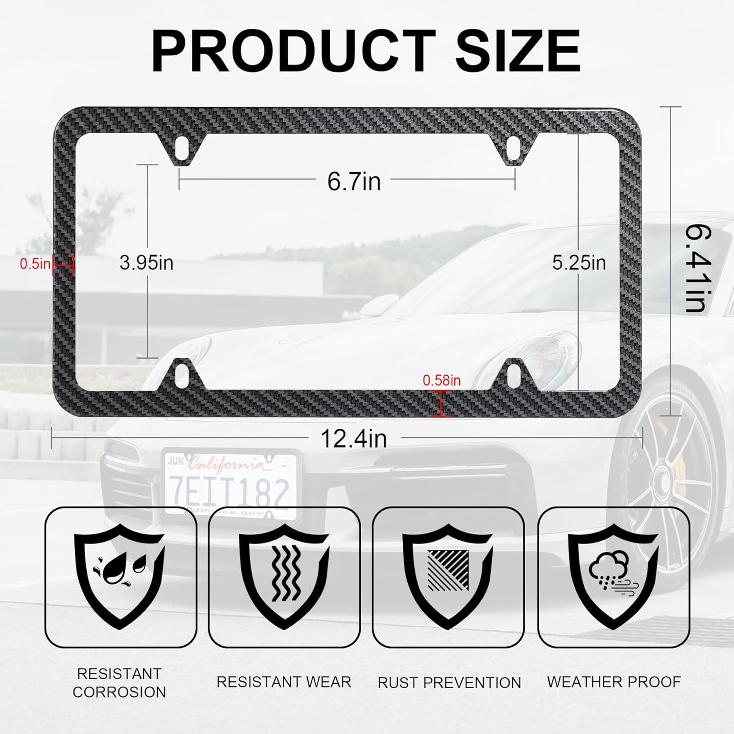 - 【Universal Fit】Measuring 12.4 inches x 6.41 inches with an inner size of 11.4 inches x 5.25 inches, these frames fit most standard US license plates. Four pre-drilled holes ensure compatibility with various vehicle models without the need for modifications. Note: Some cars have only 2 holes, so please check your vehicle before ordering.