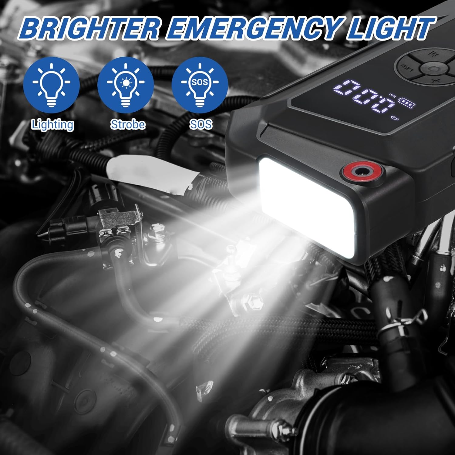 - Portable & Versatile: The portable car jump starter measures 8.07 x 4.41 x 2.19 inches and weighs only 1.5 pounds, making it easy to store in your car and travel bag